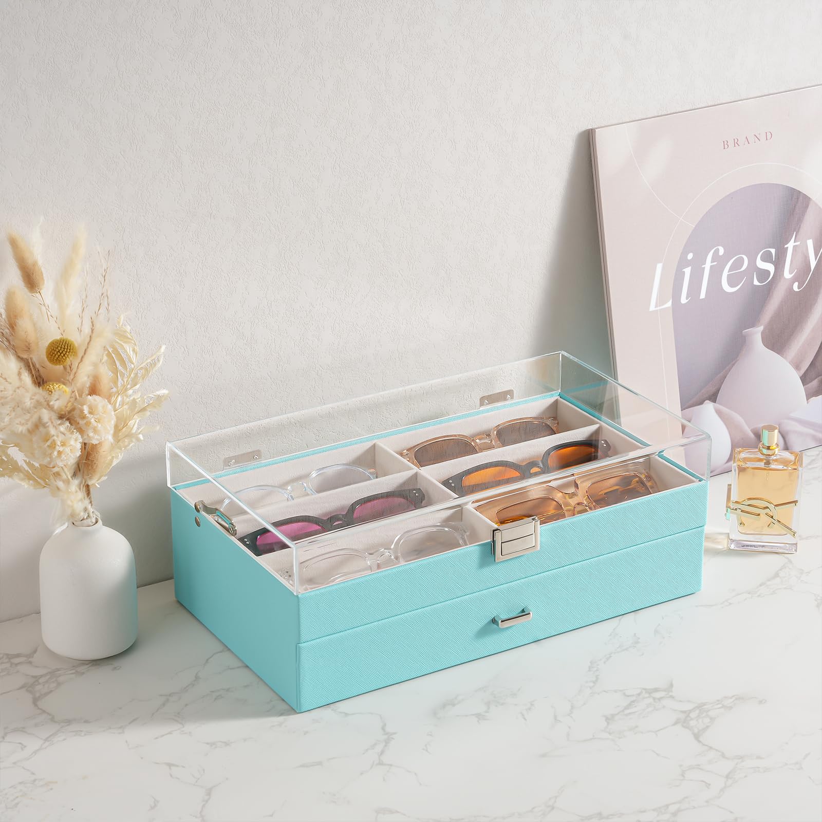 Glasses & Sunglasses Organizer Box with Clear Glass Lid