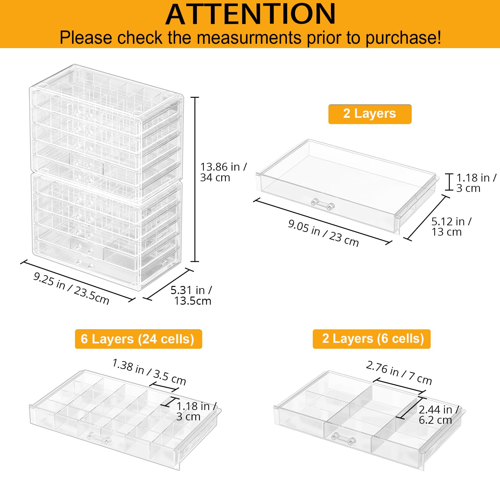 Large Earring Jewelry Box Case, with Drawer and Grid