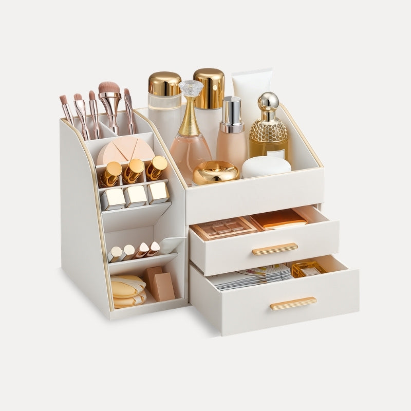PU Leather Spacious Makeup Organizer with Drawers