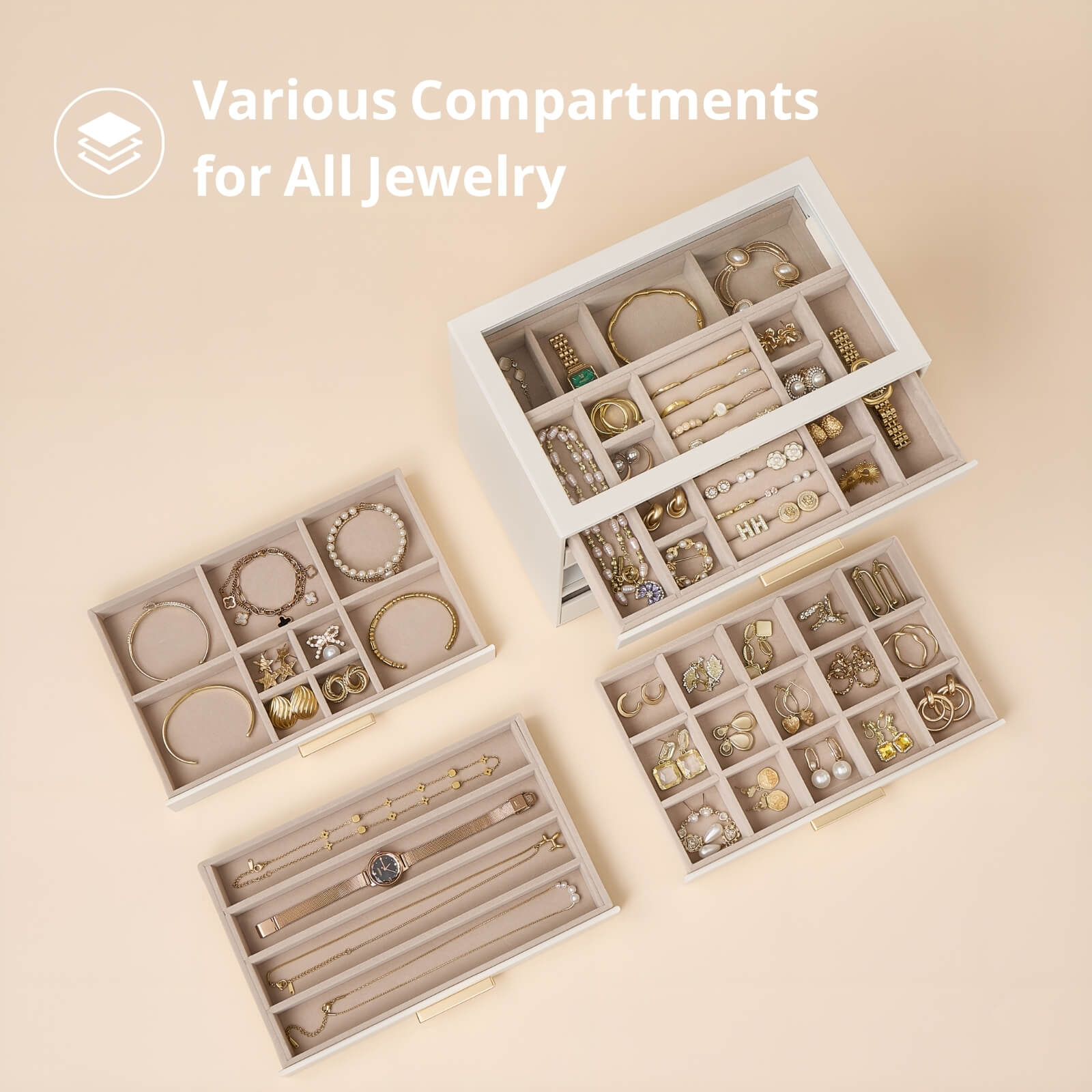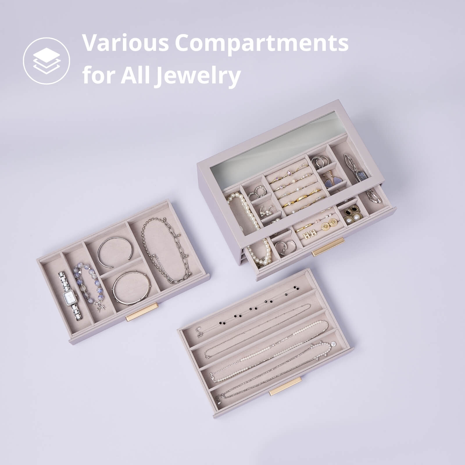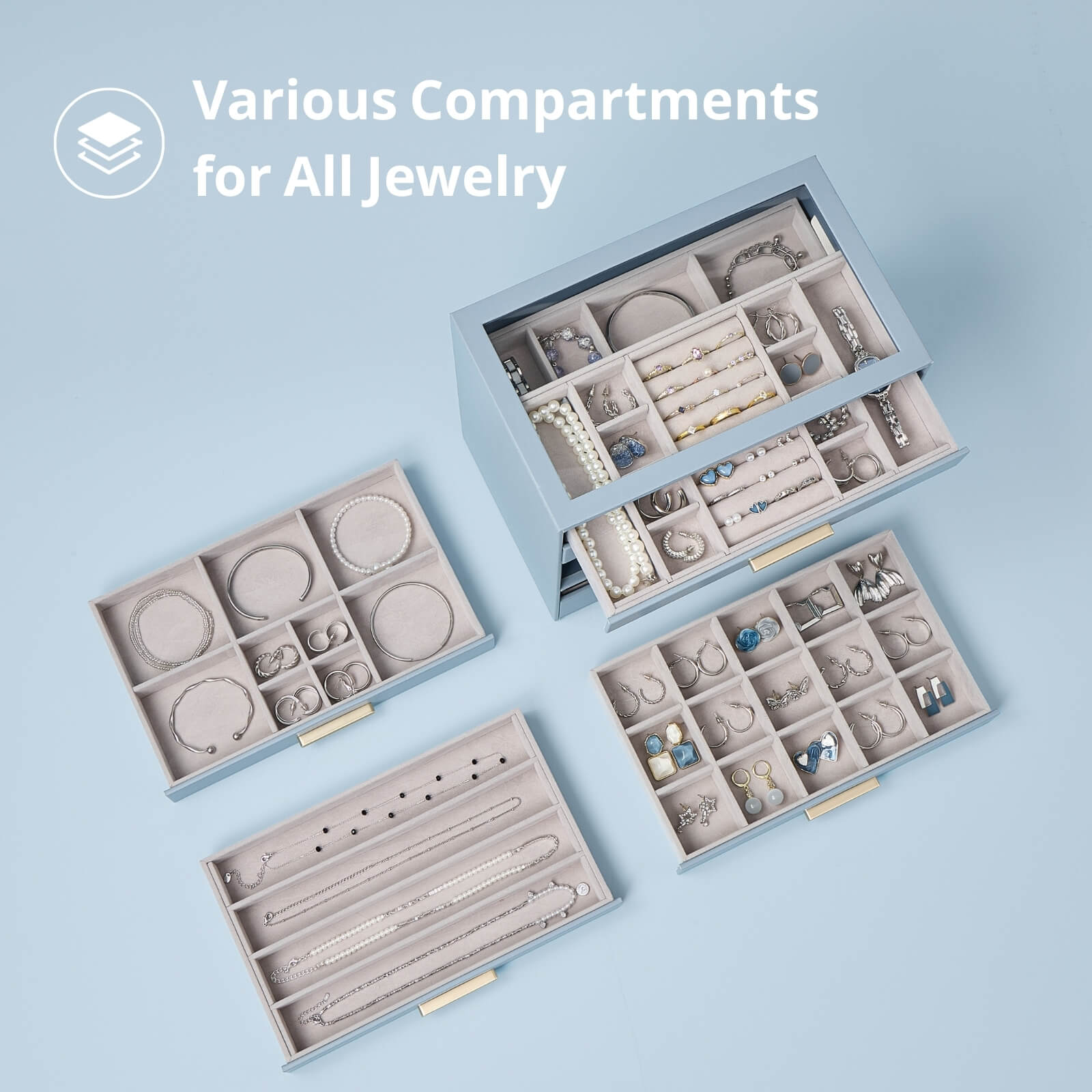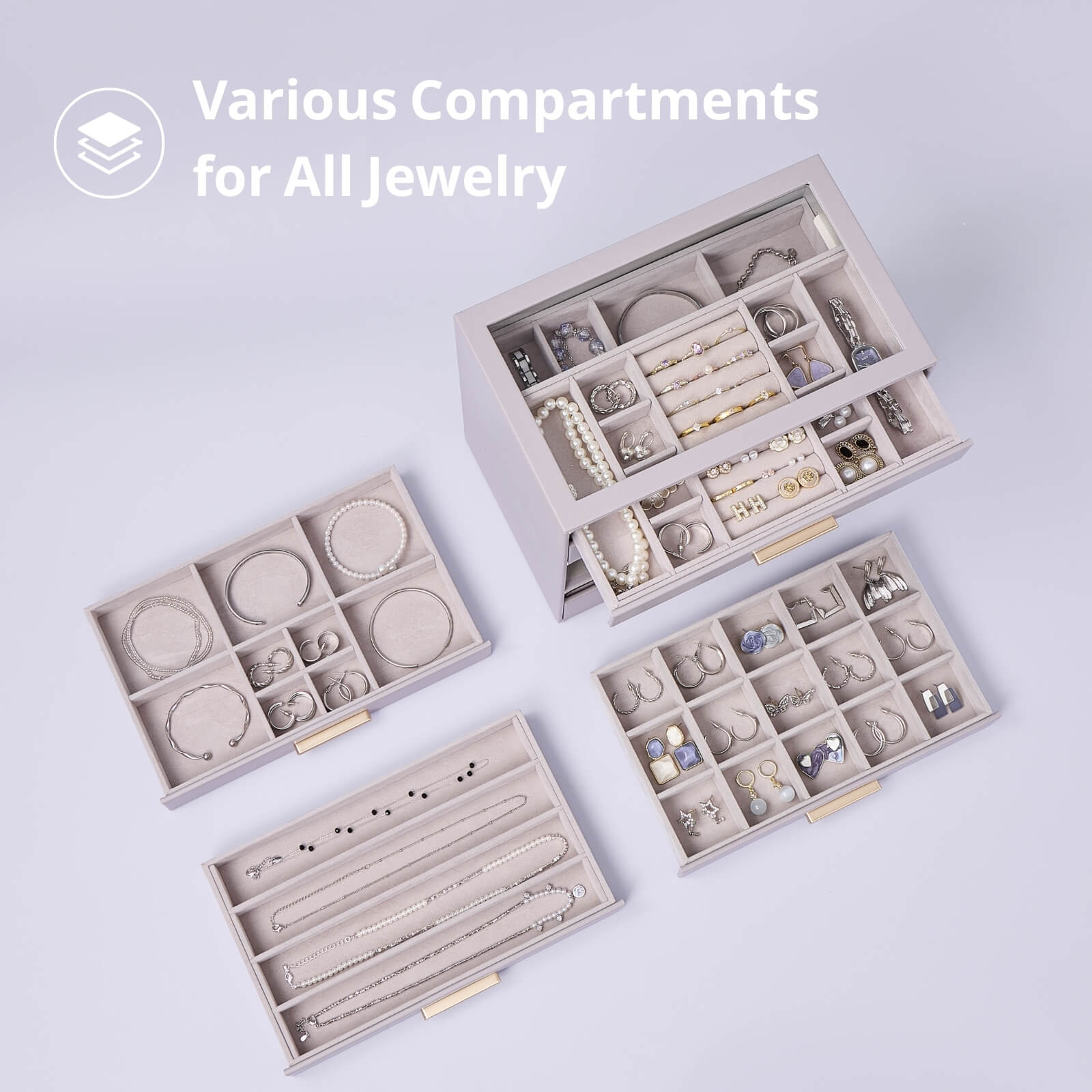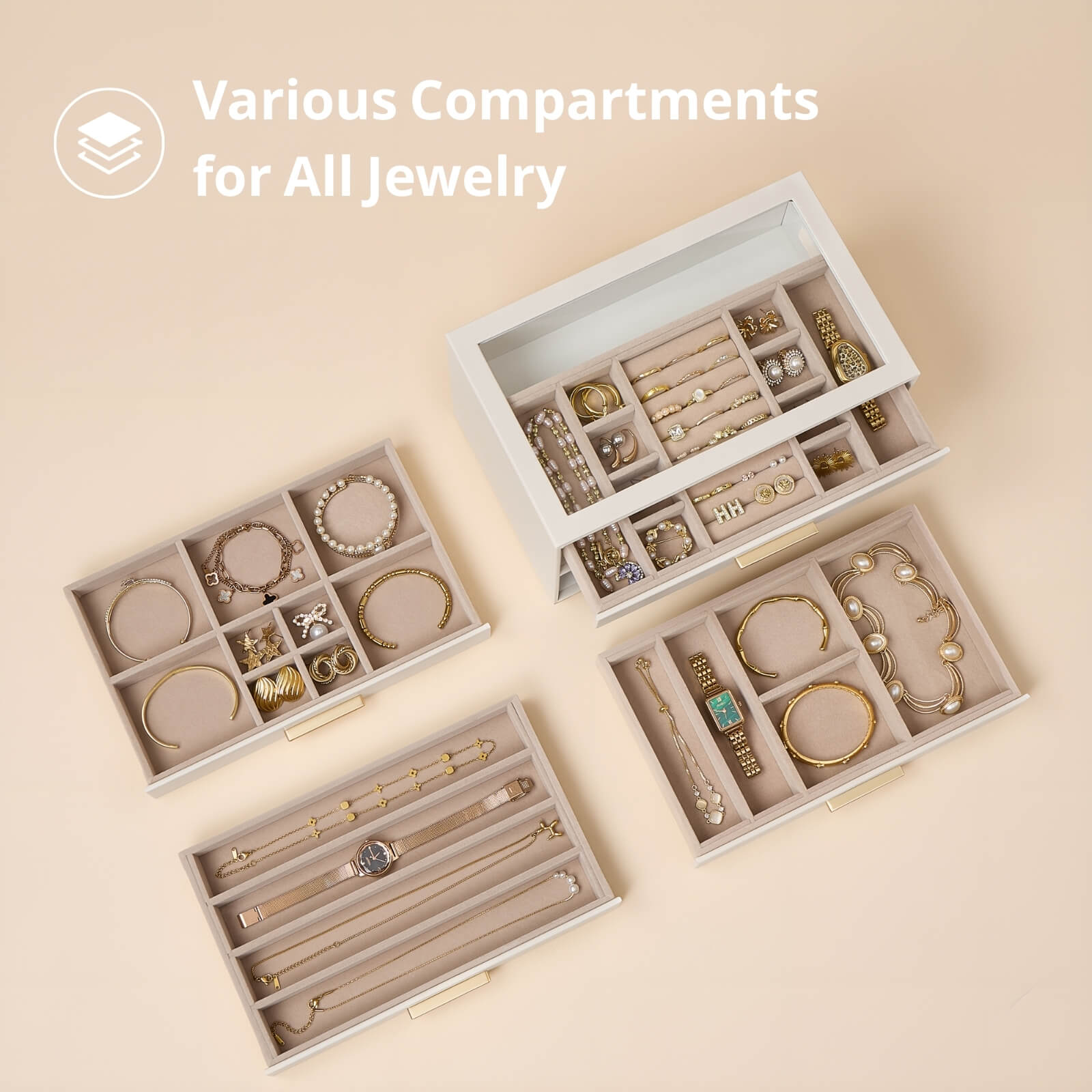 Hot New Arrival - Luxury Leather Multi-Layer Jewelry Organizer with Glass Lid