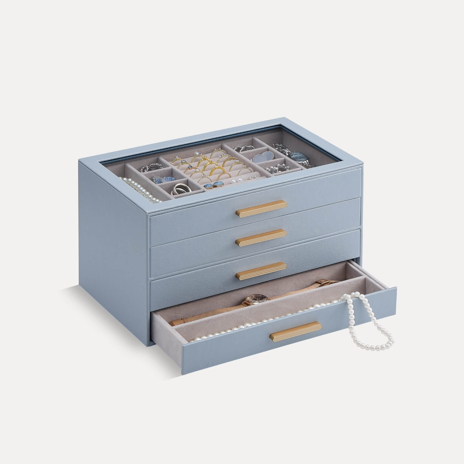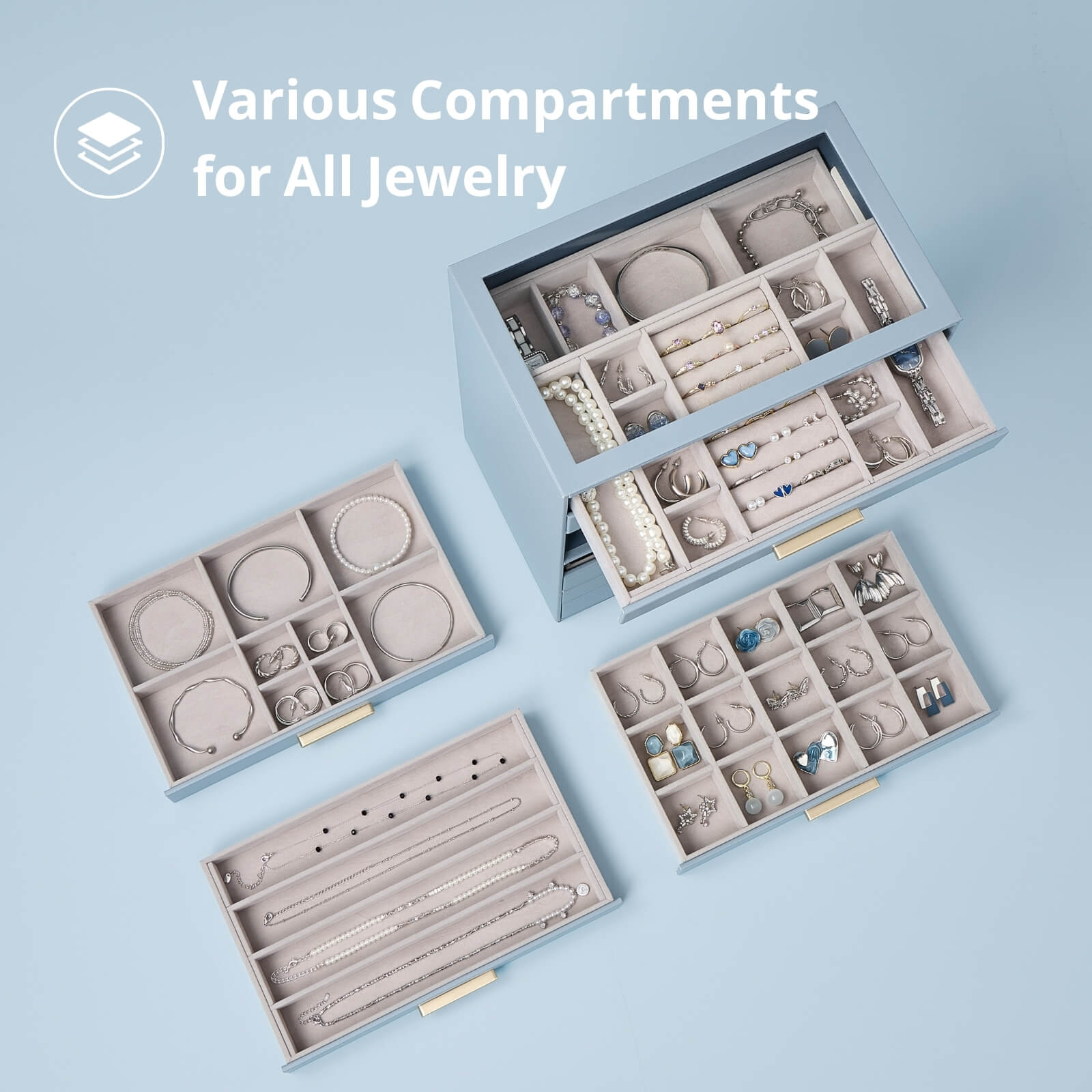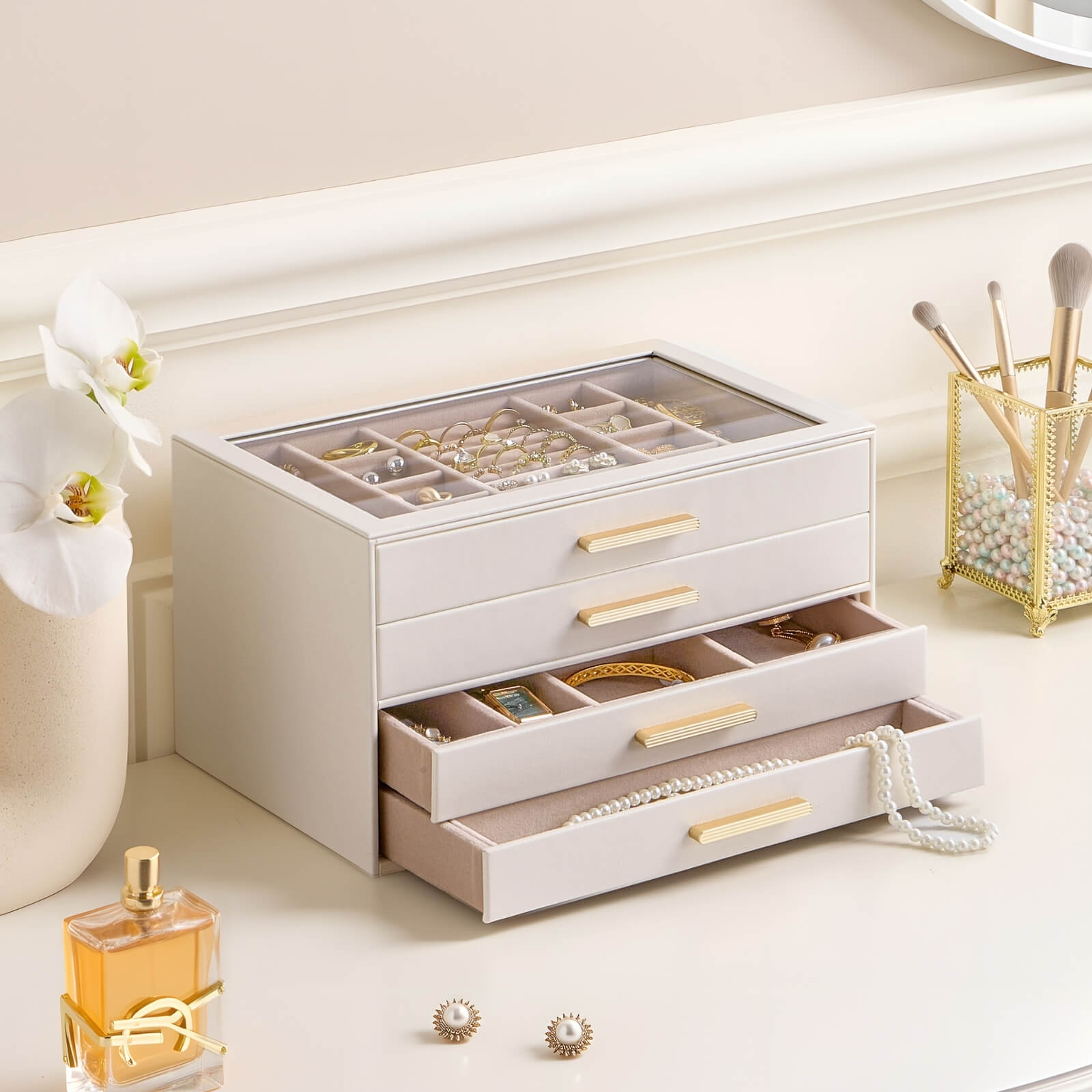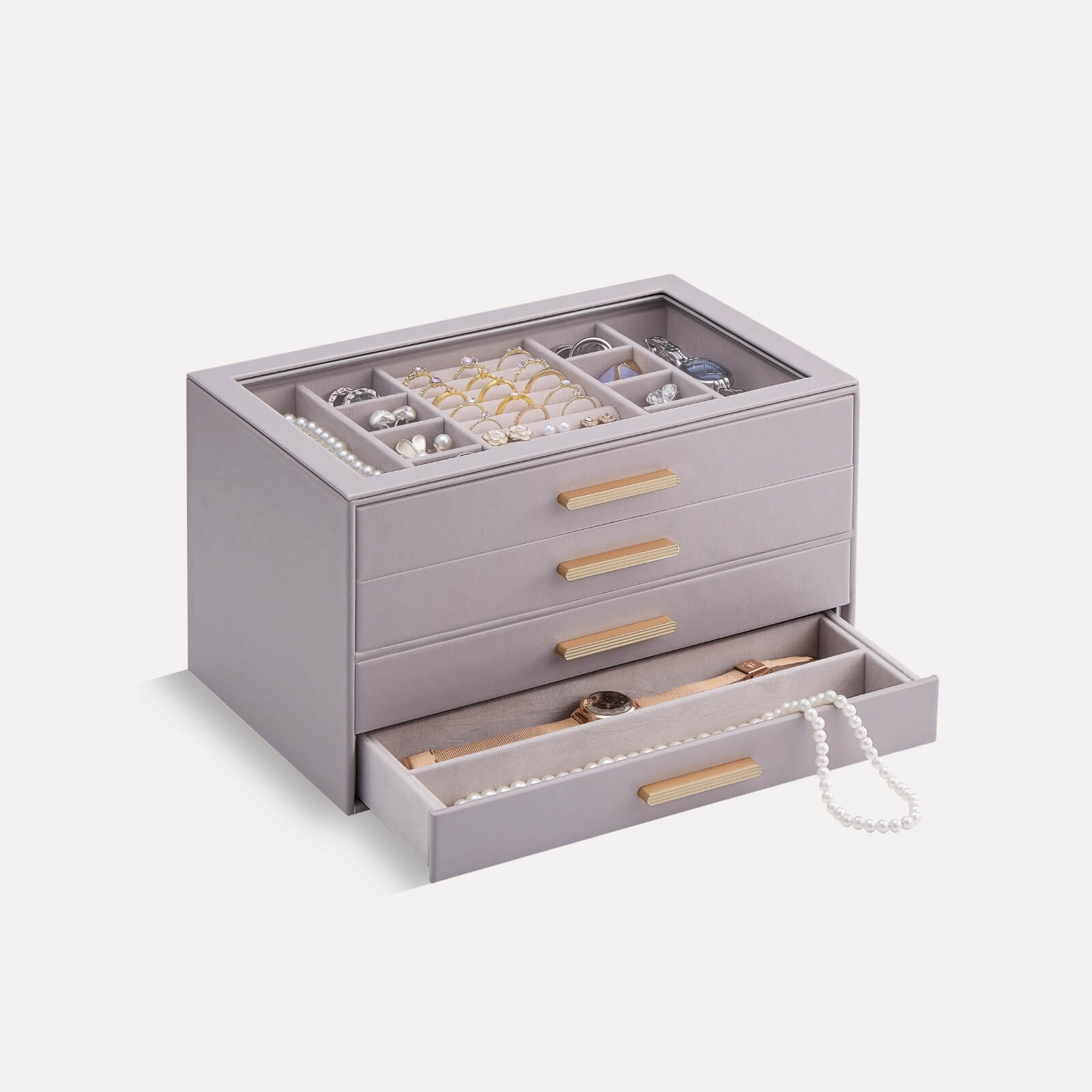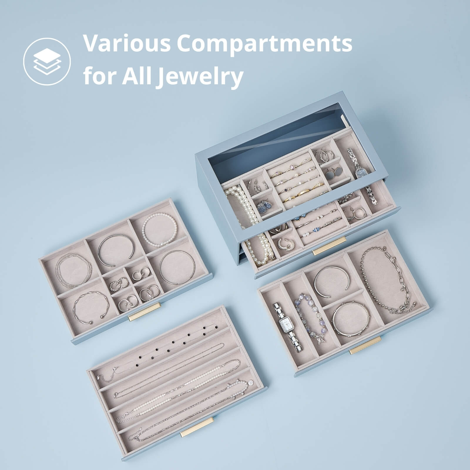 Hot New Arrival - Luxury Leather Multi-Layer Jewelry Organizer with Glass Lid