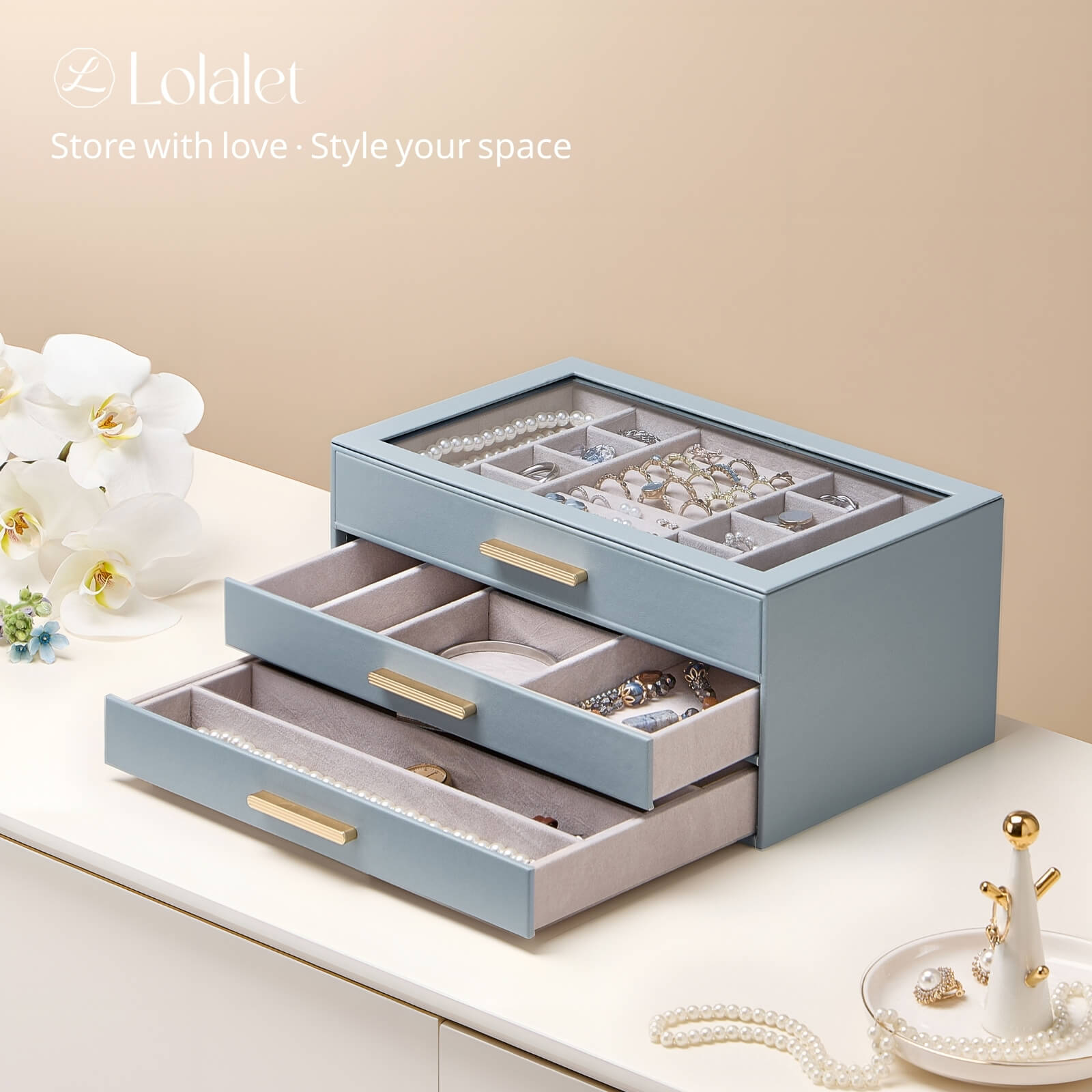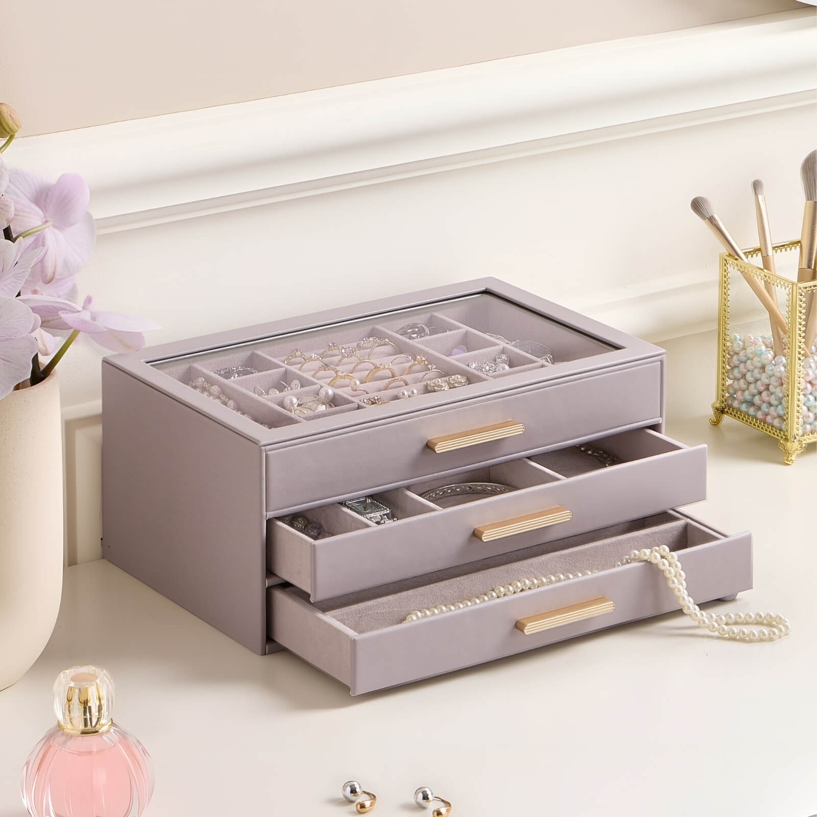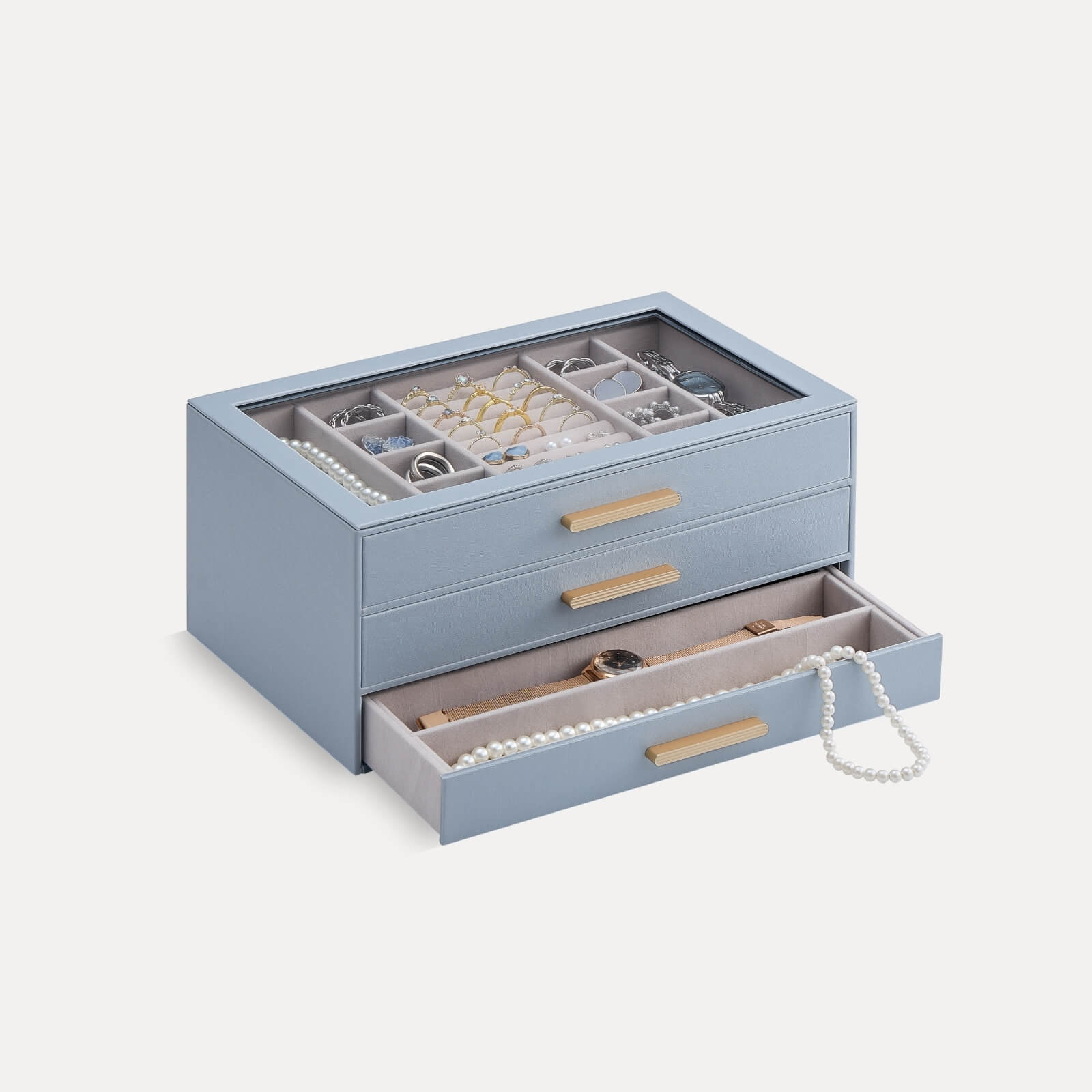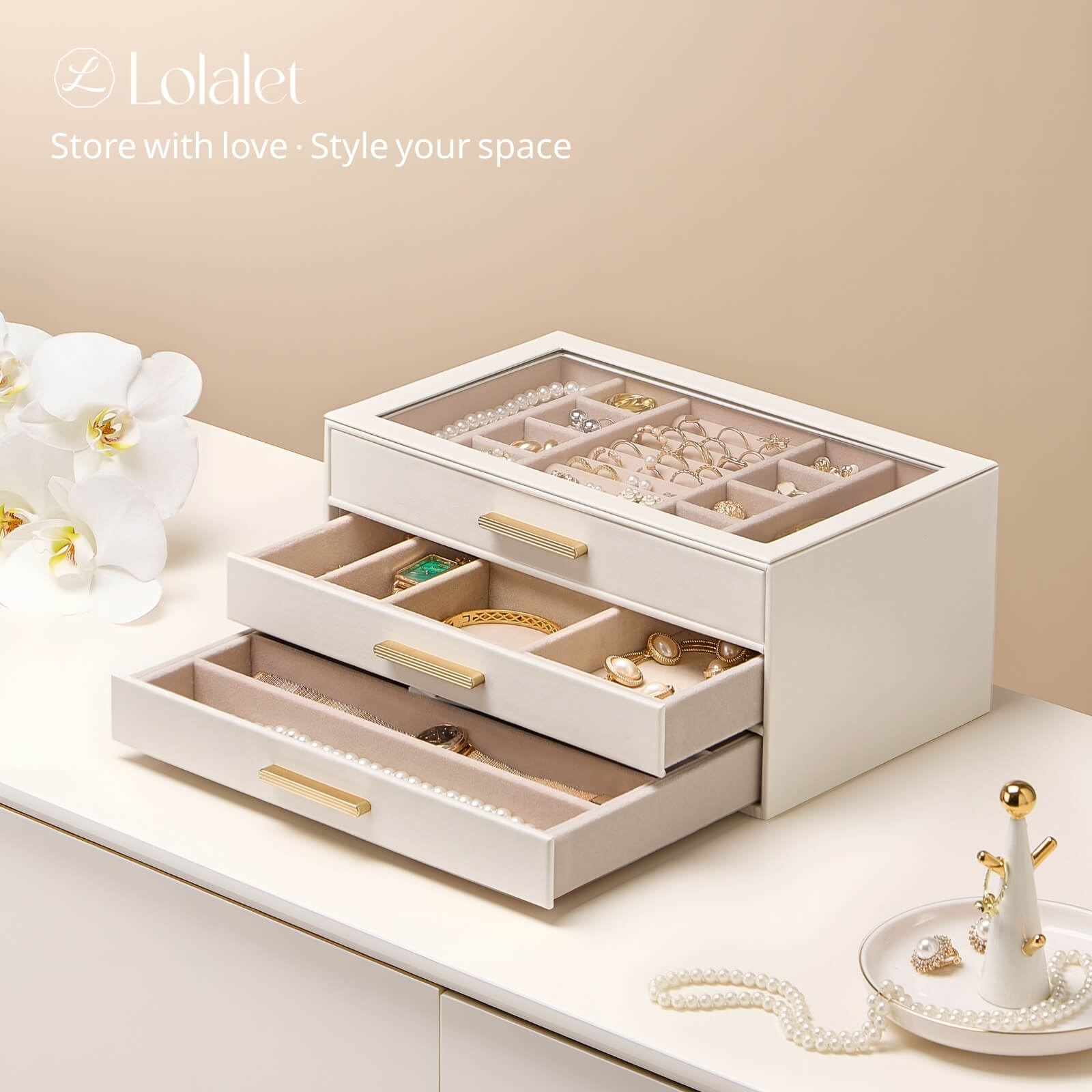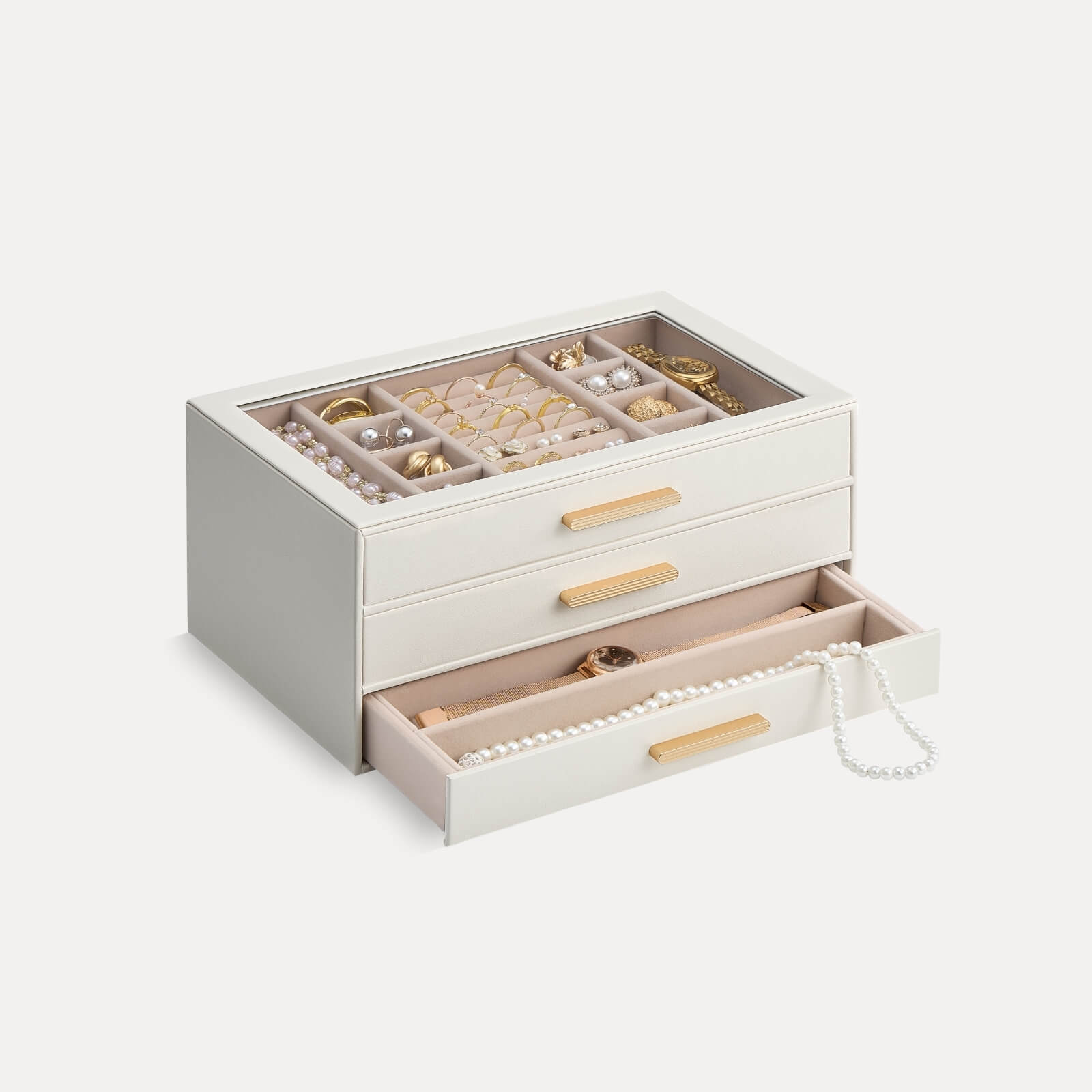 Hot New Arrival - Luxury Leather Multi-Layer Jewelry Organizer with Glass Lid