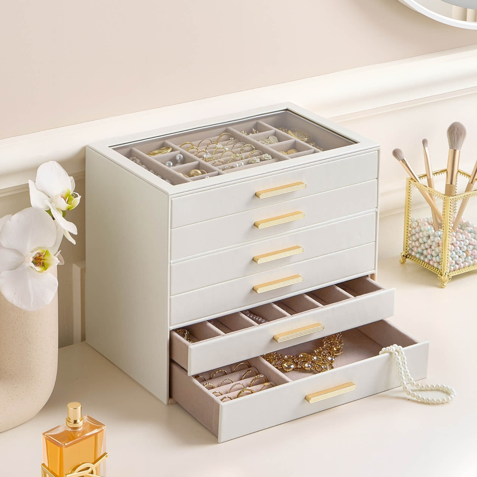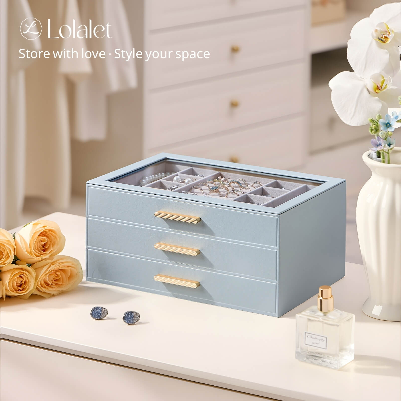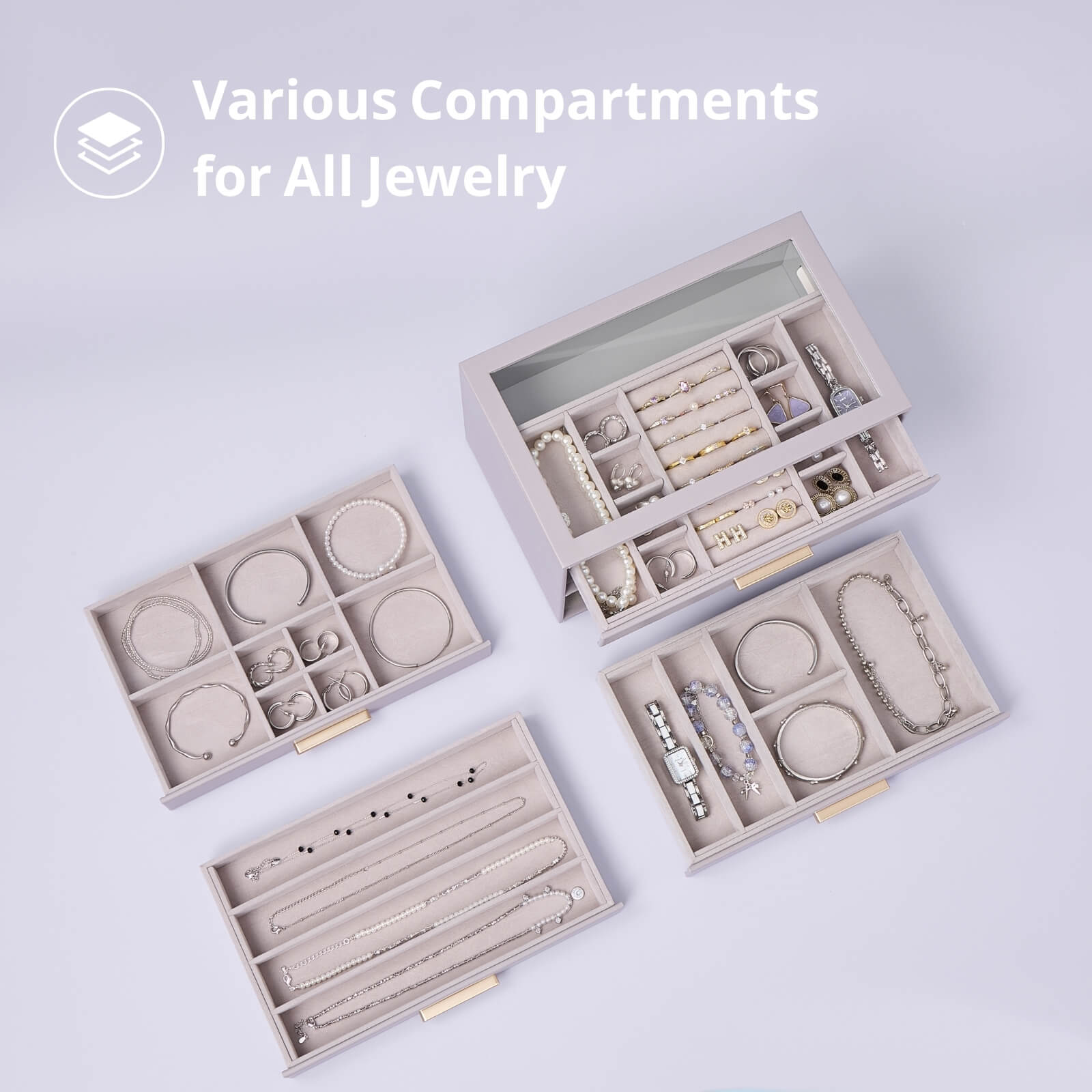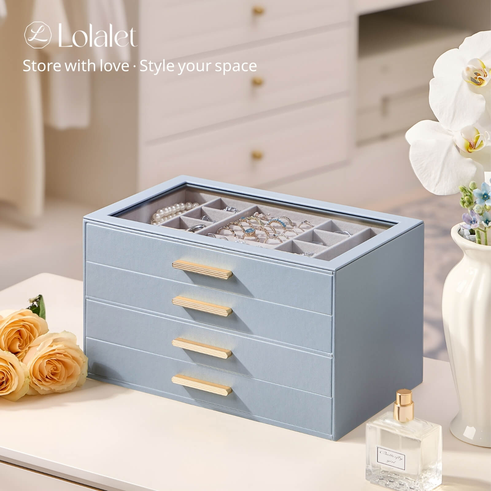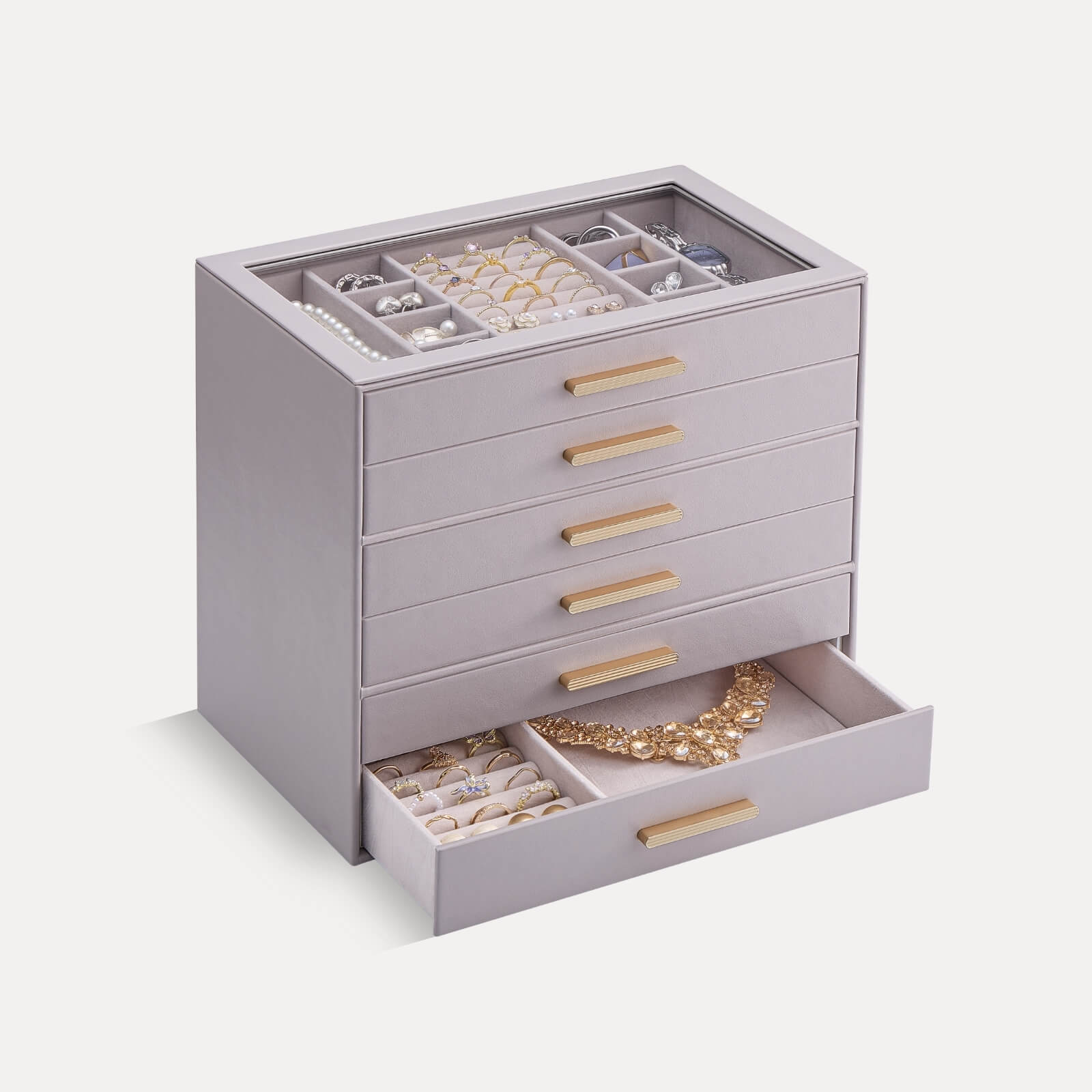 Hot New Arrival - Luxury Leather Multi-Layer Jewelry Organizer with Glass Lid