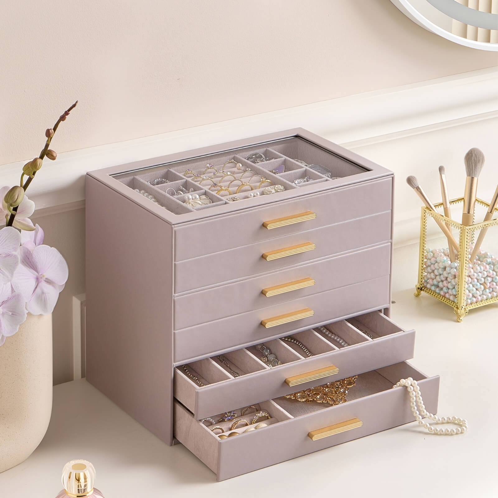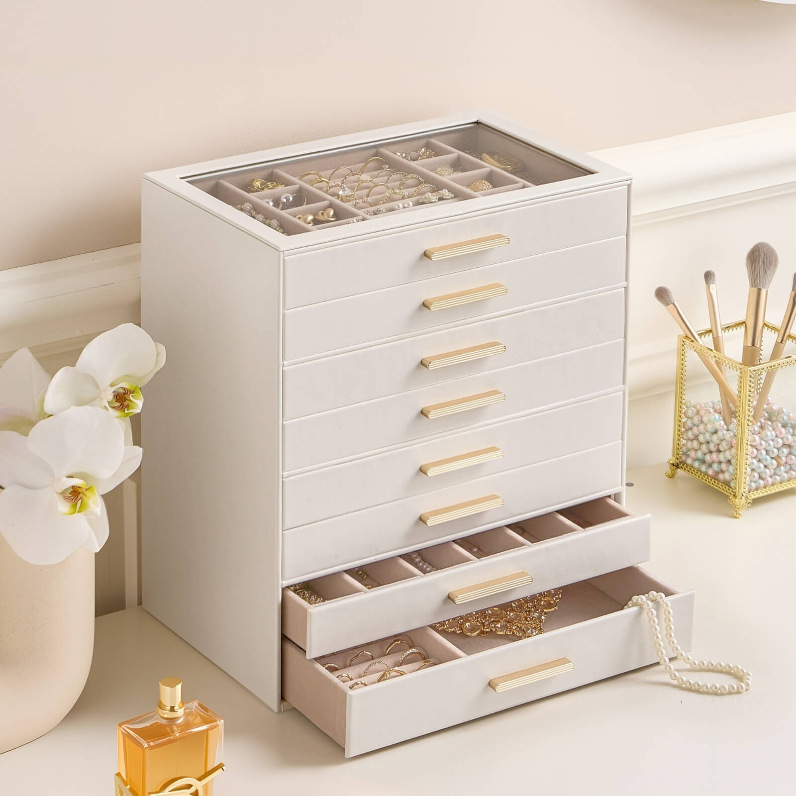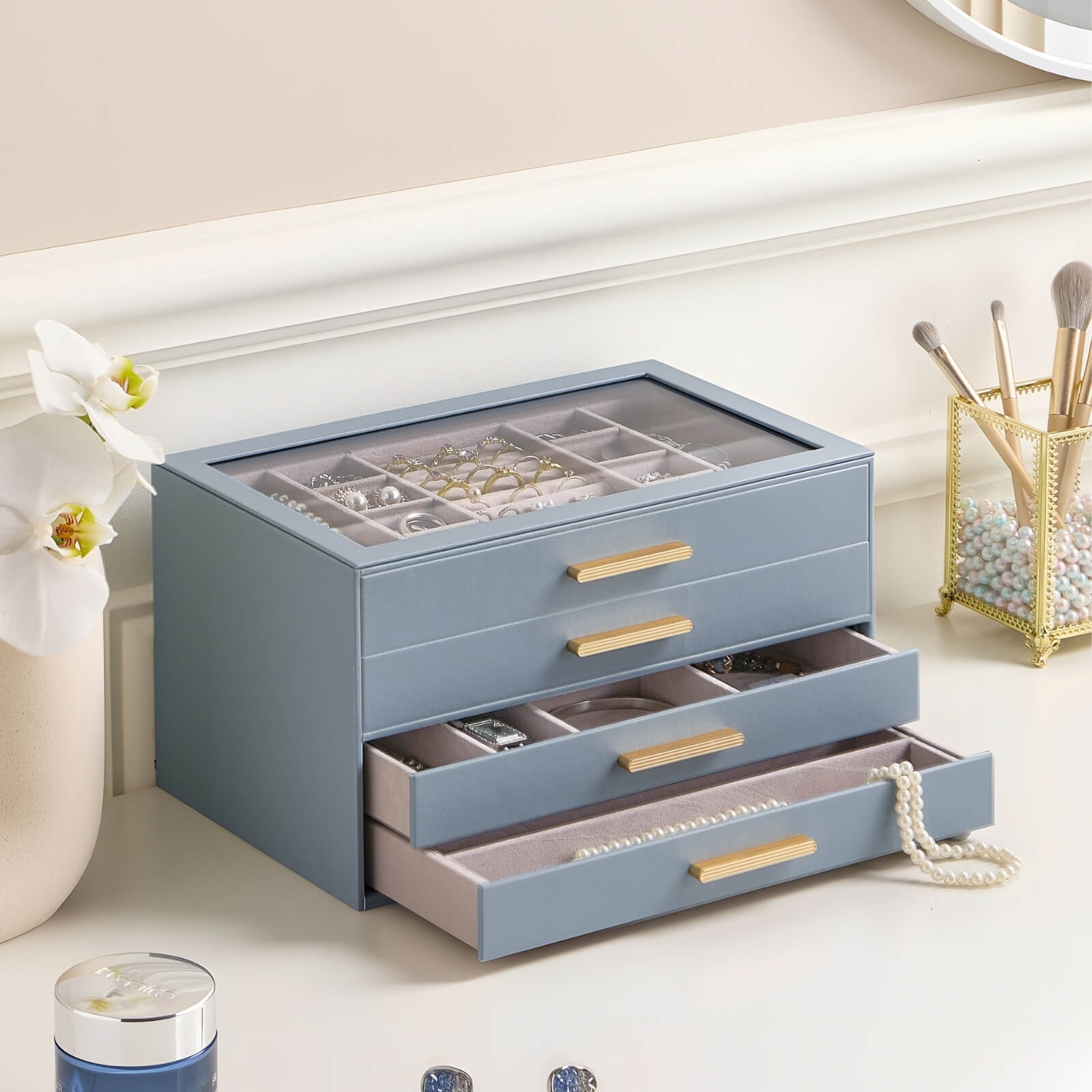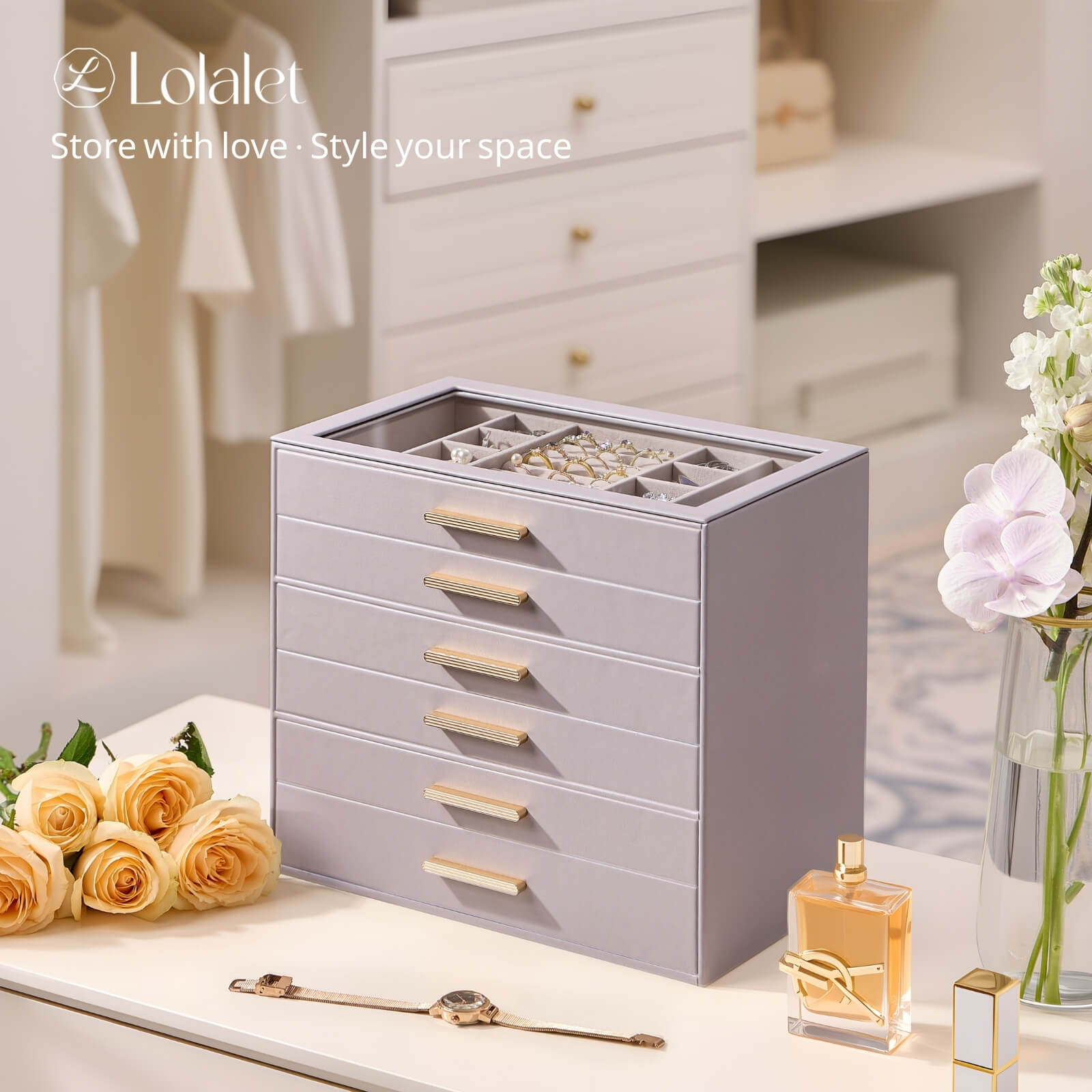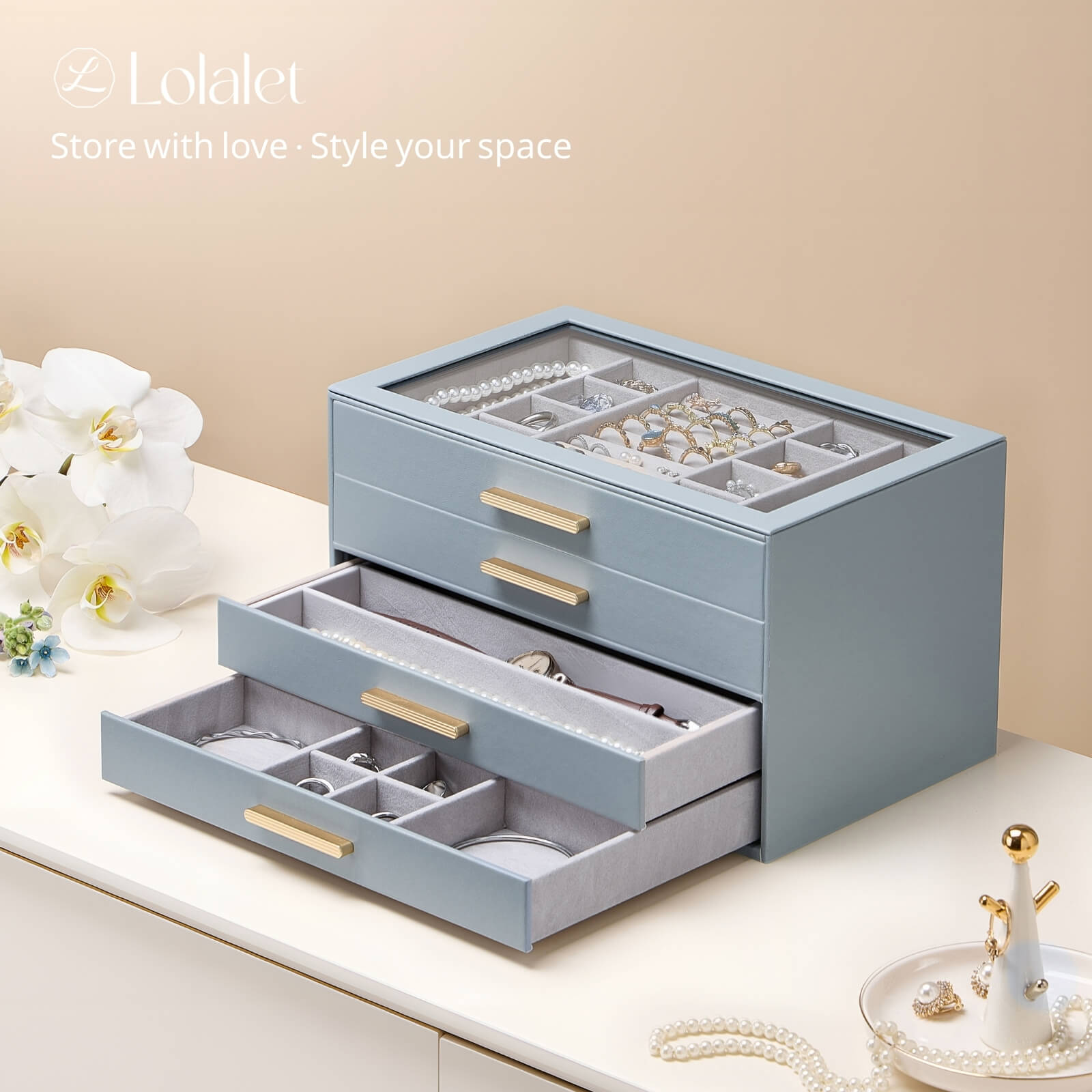 Hot New Arrival - Luxury Leather Multi-Layer Jewelry Organizer with Glass Lid