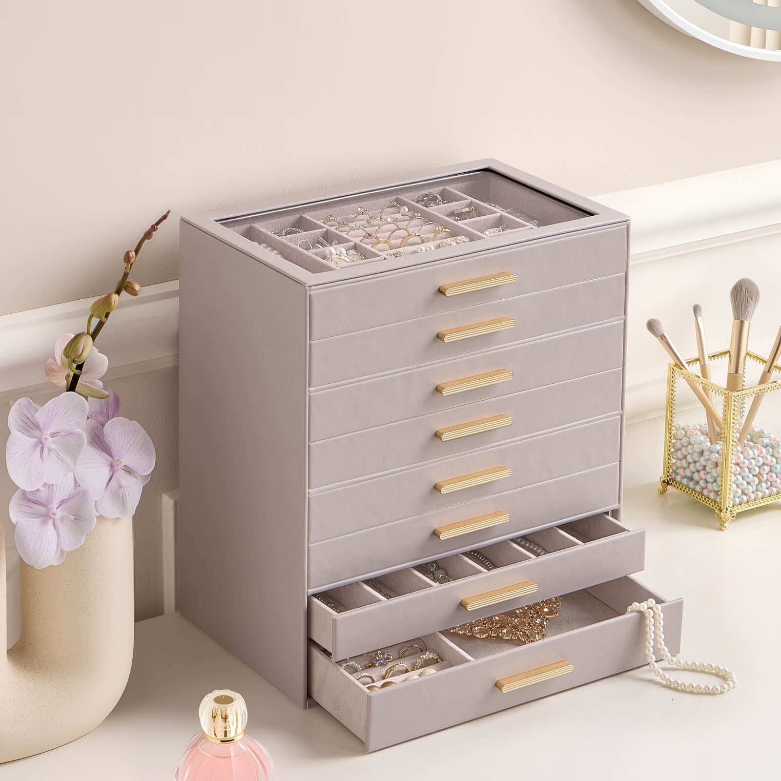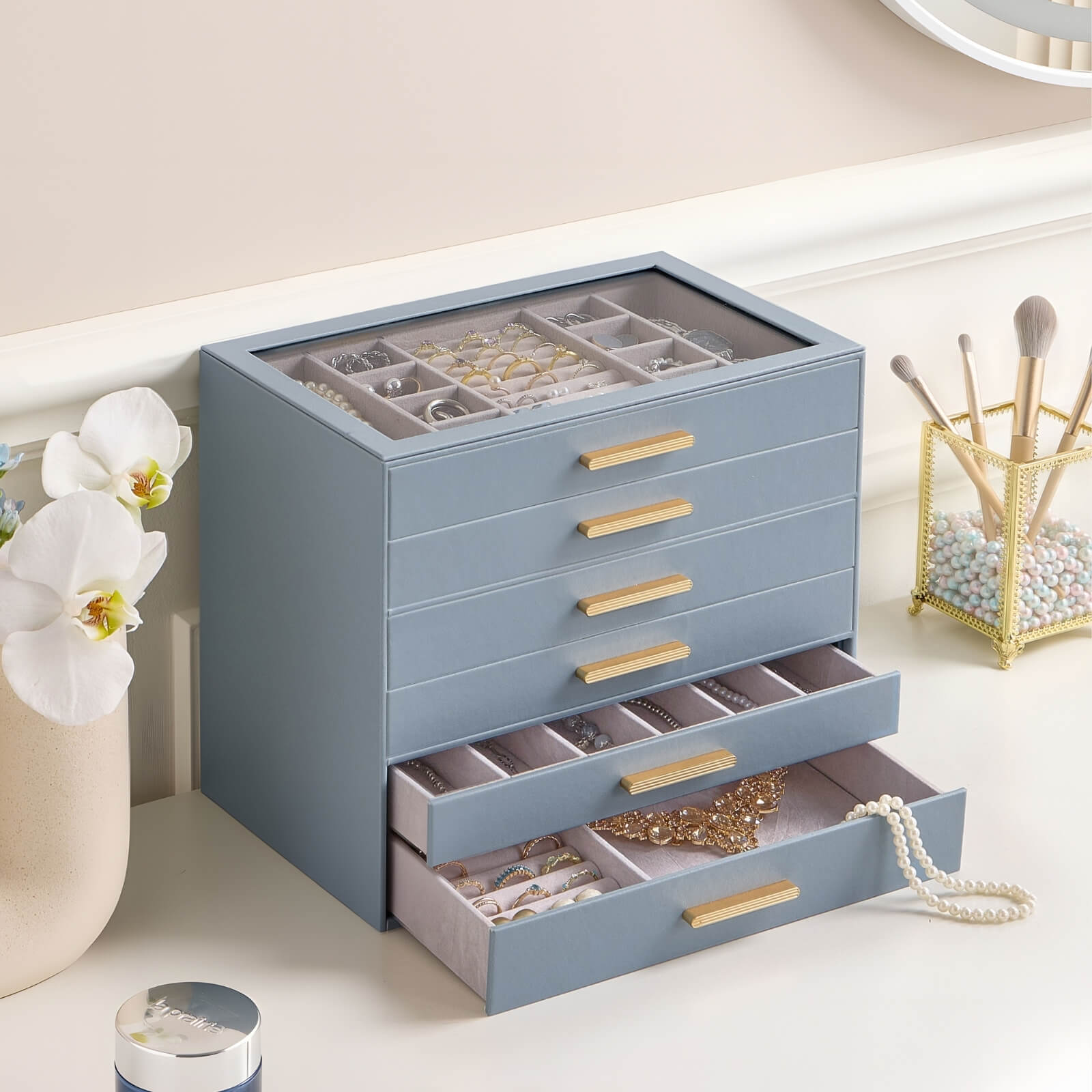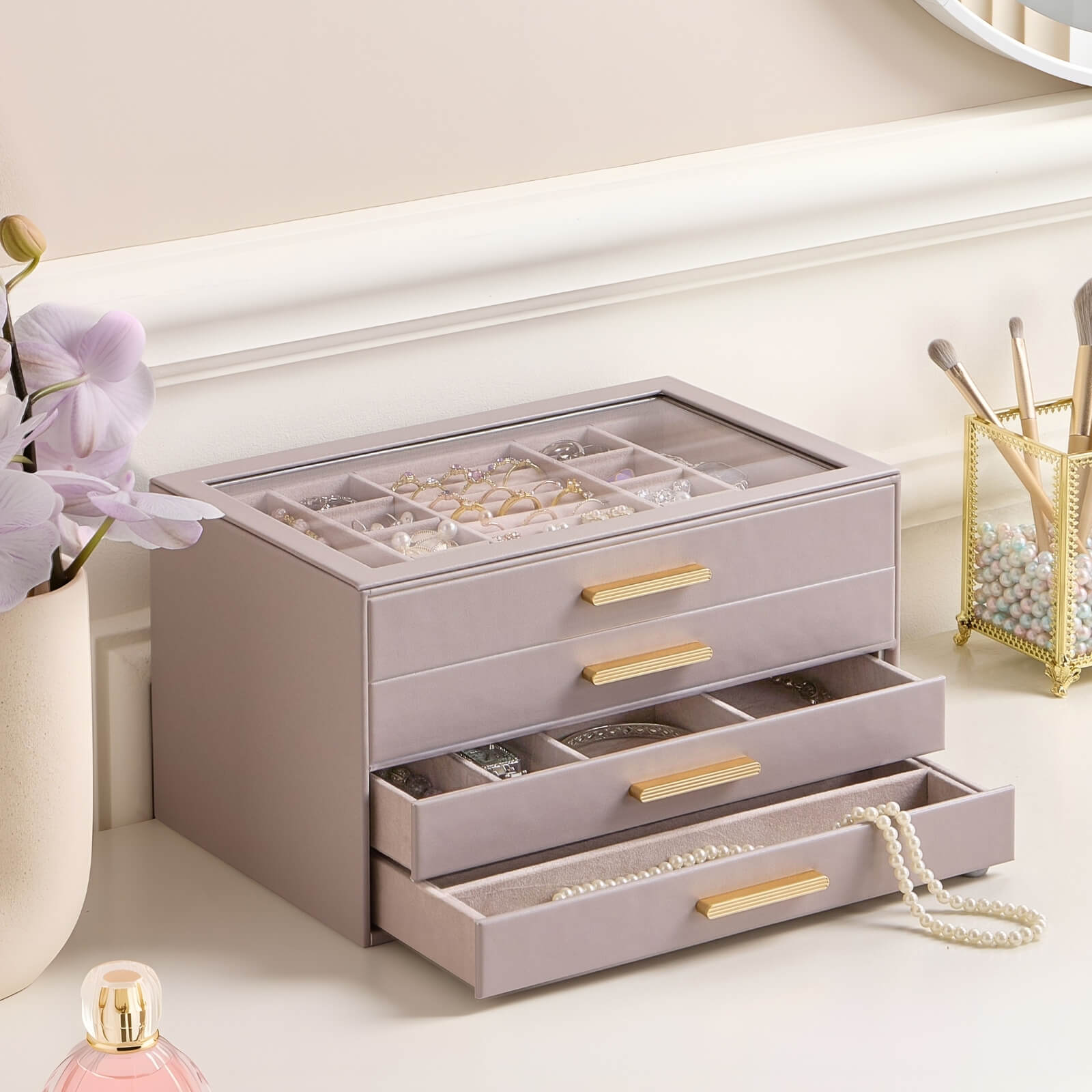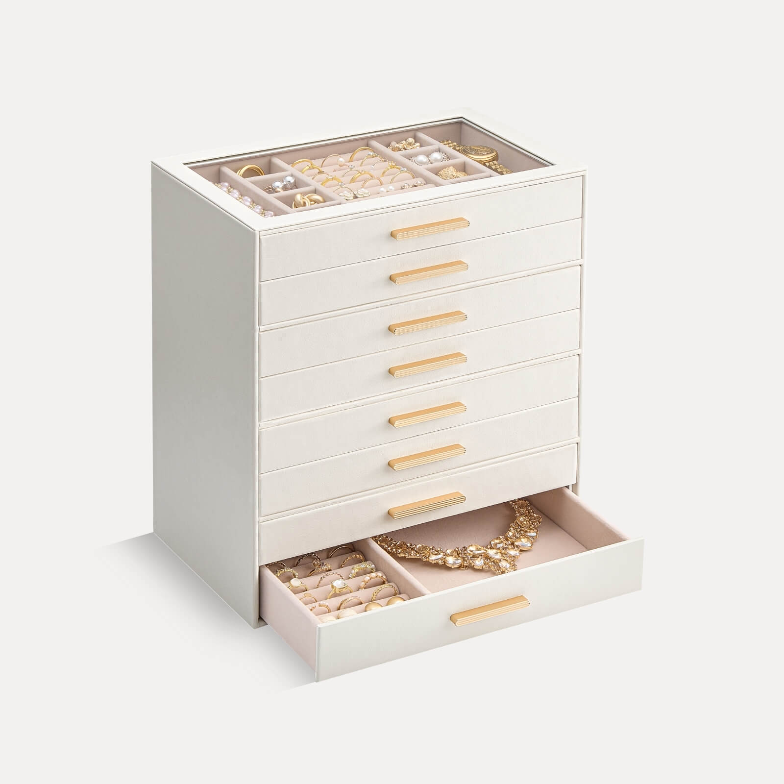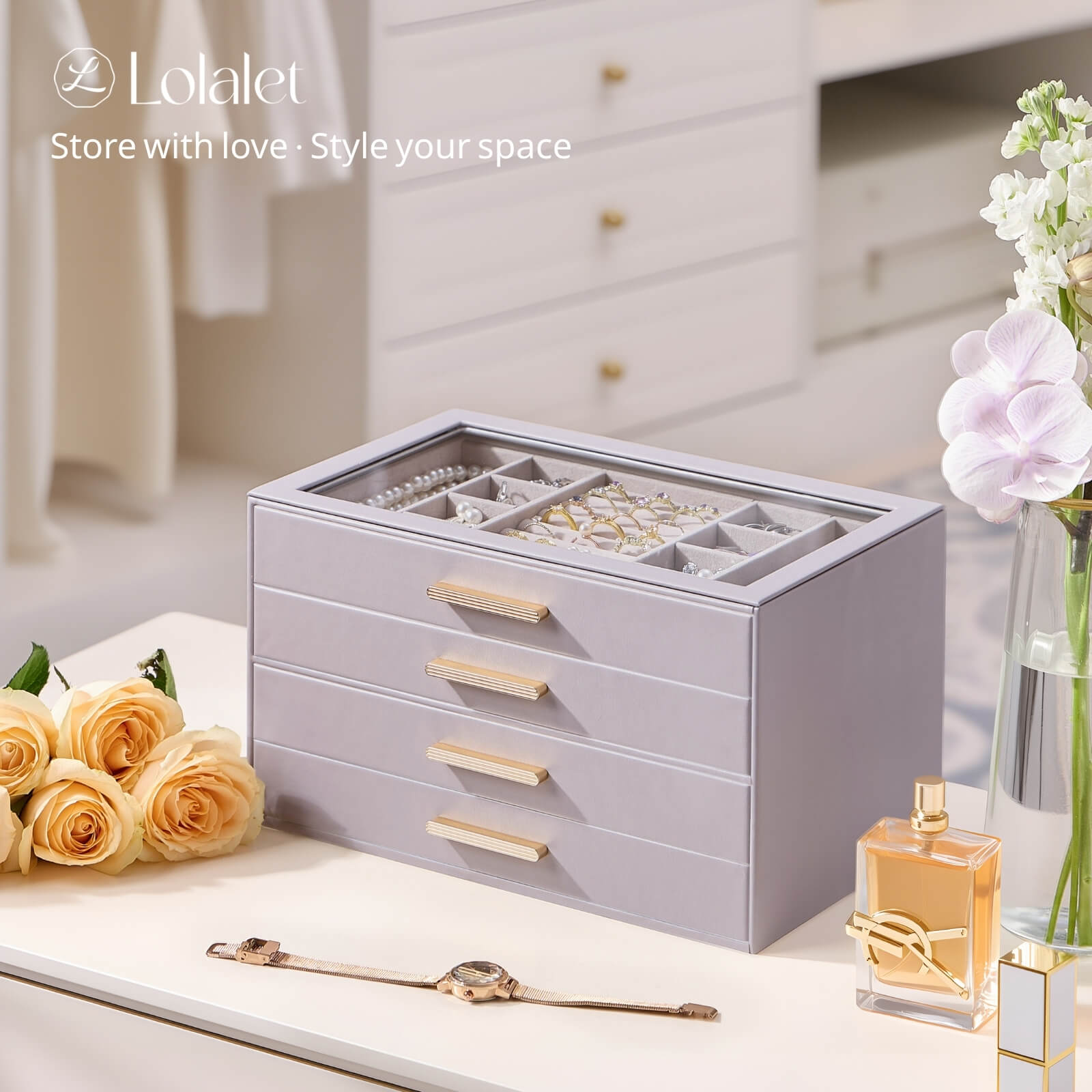 Hot New Arrival - Luxury Leather Multi-Layer Jewelry Organizer with Glass Lid