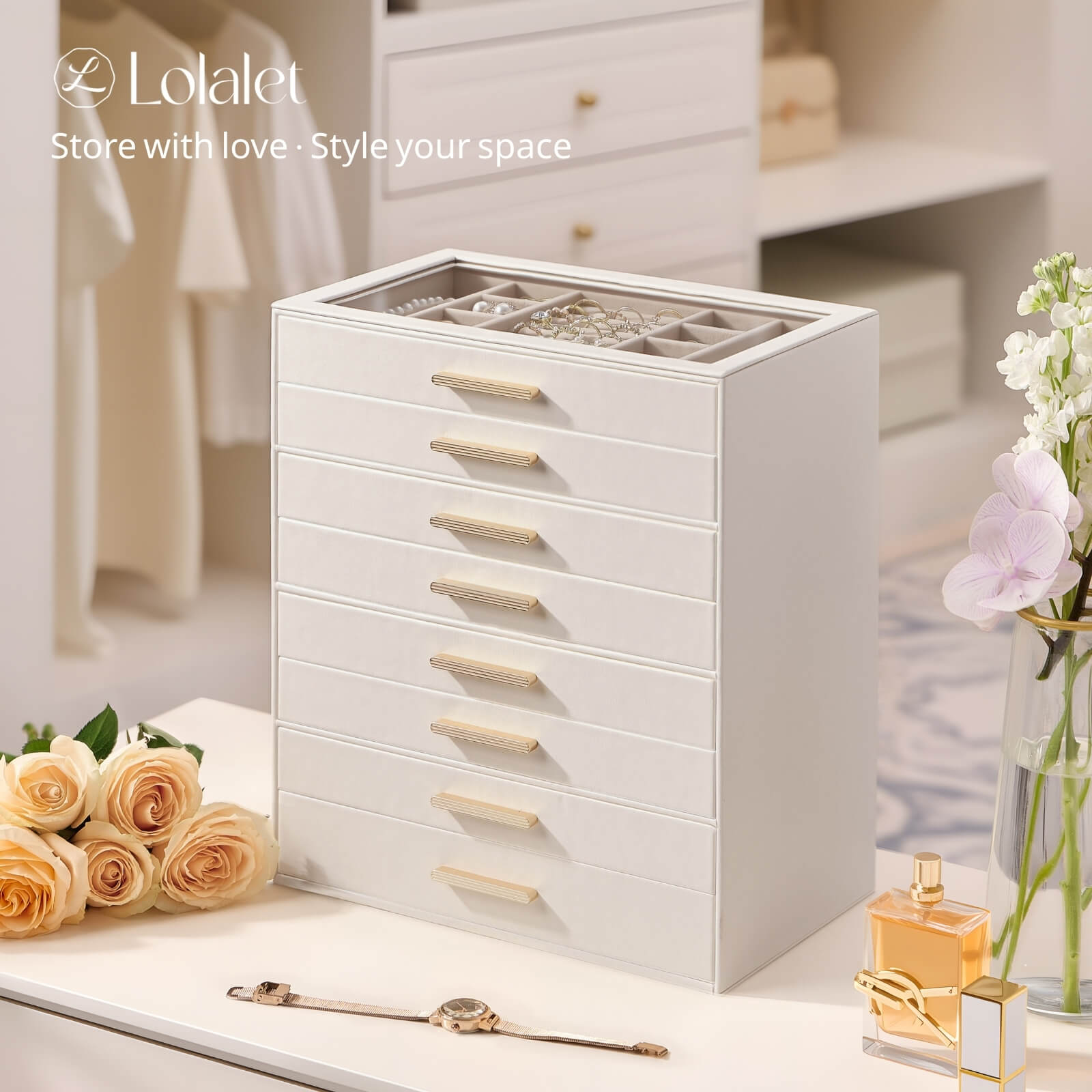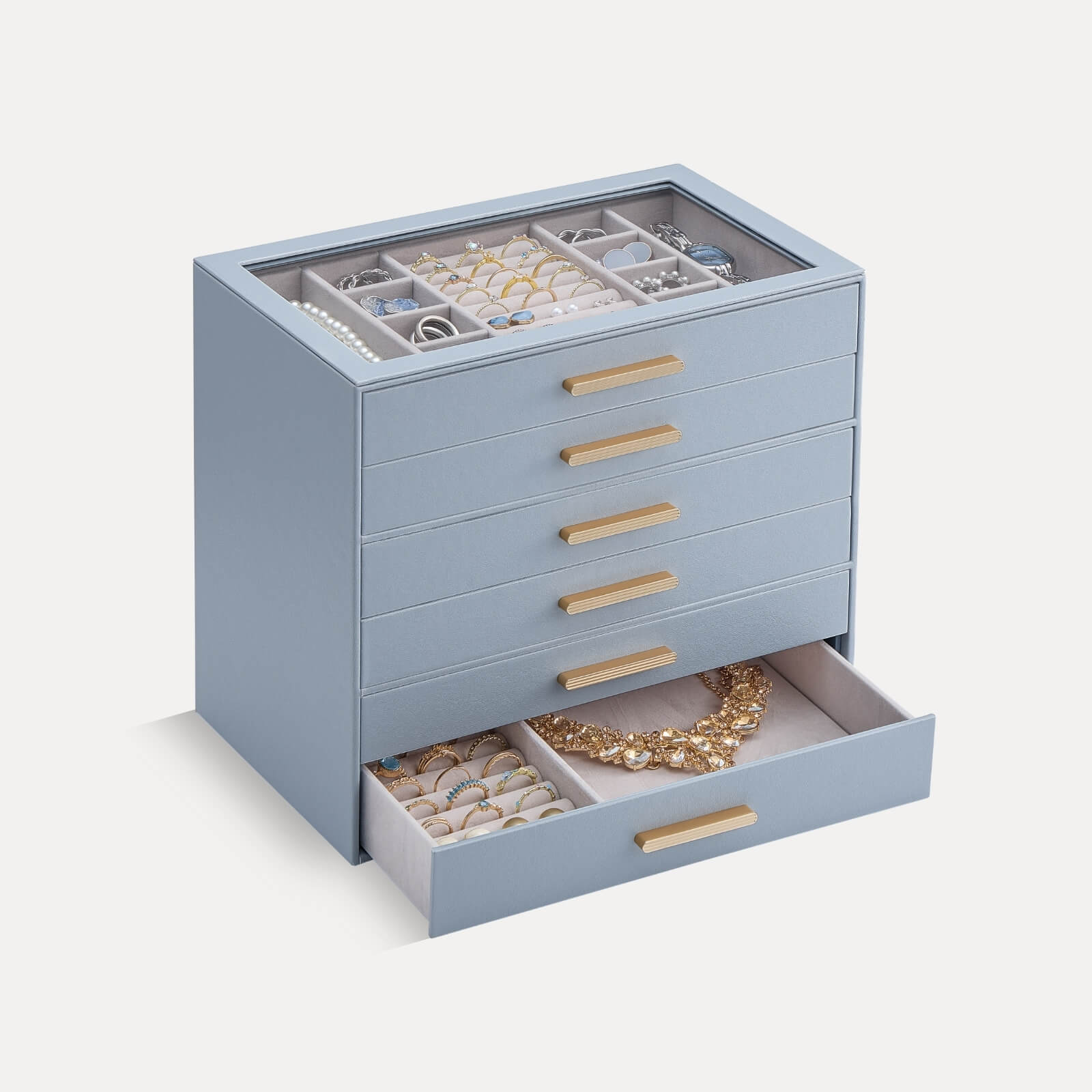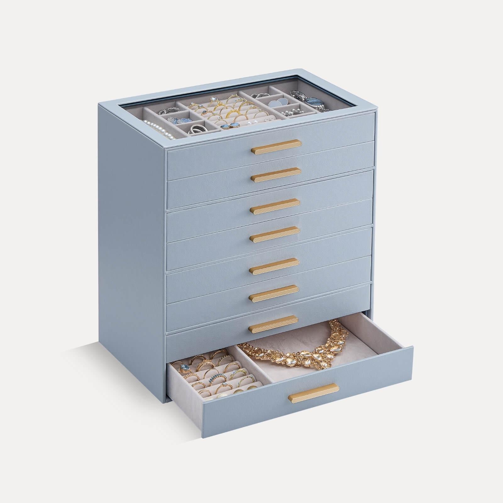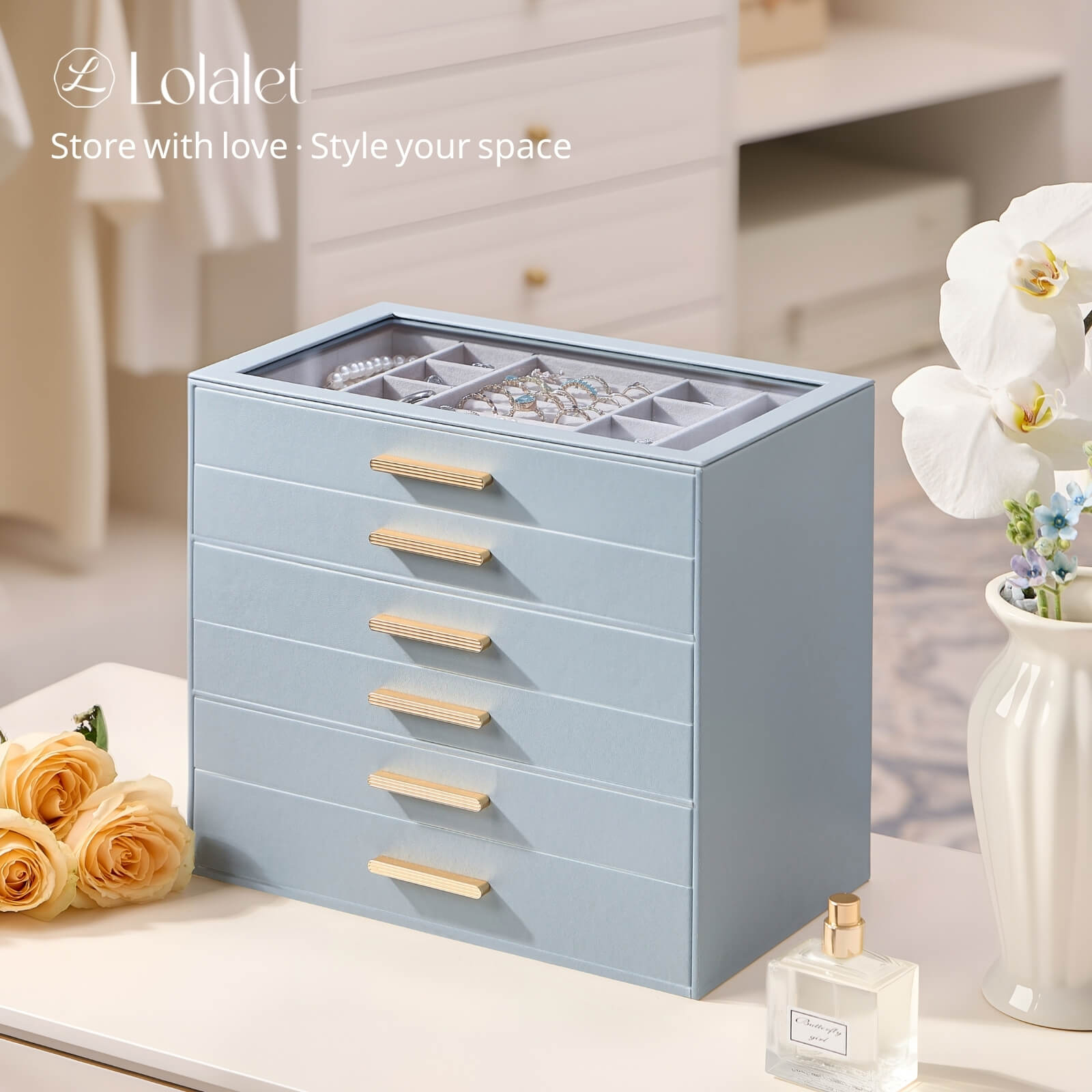 Luxury Jewelry Storage Case with Auto-Lift Tray & Drawers