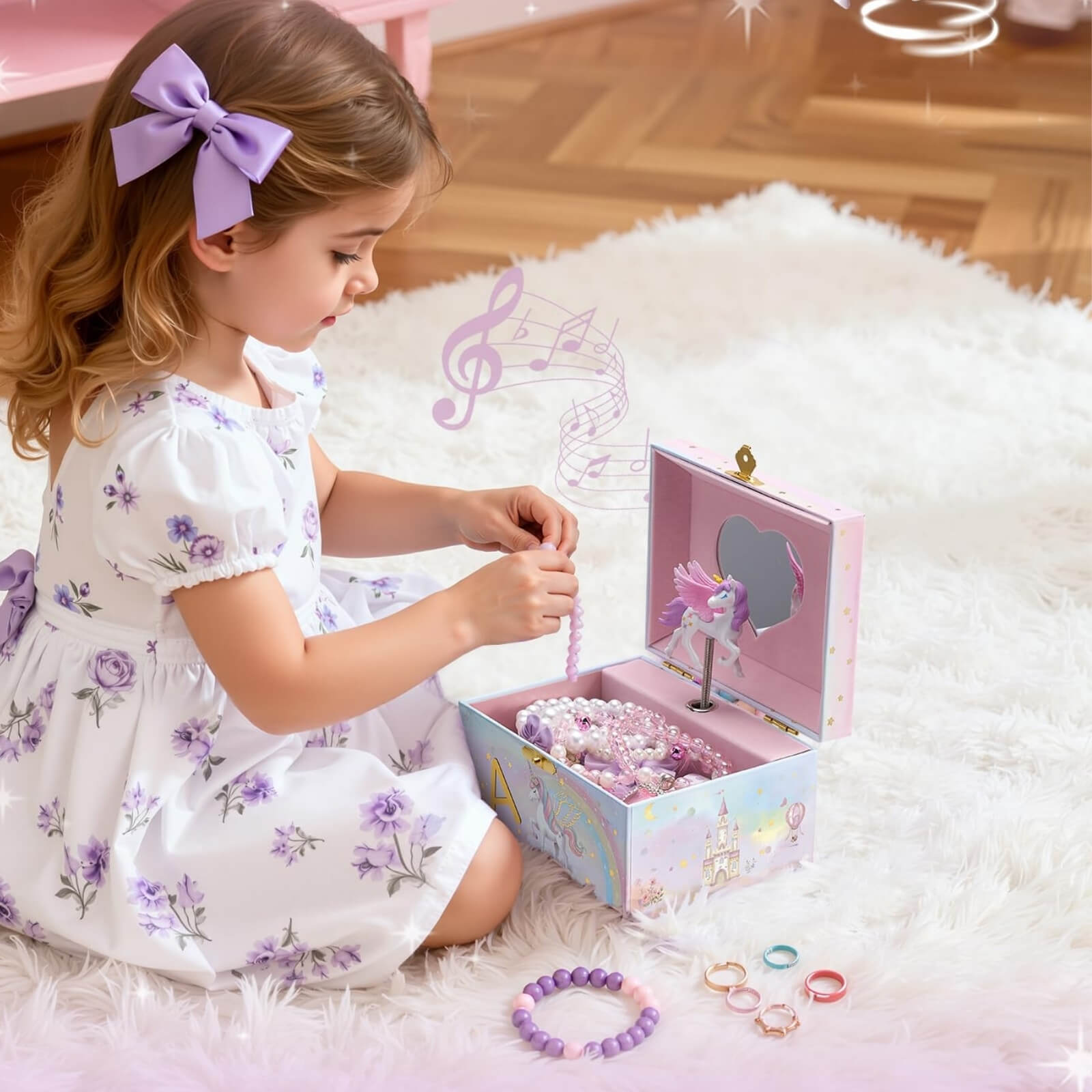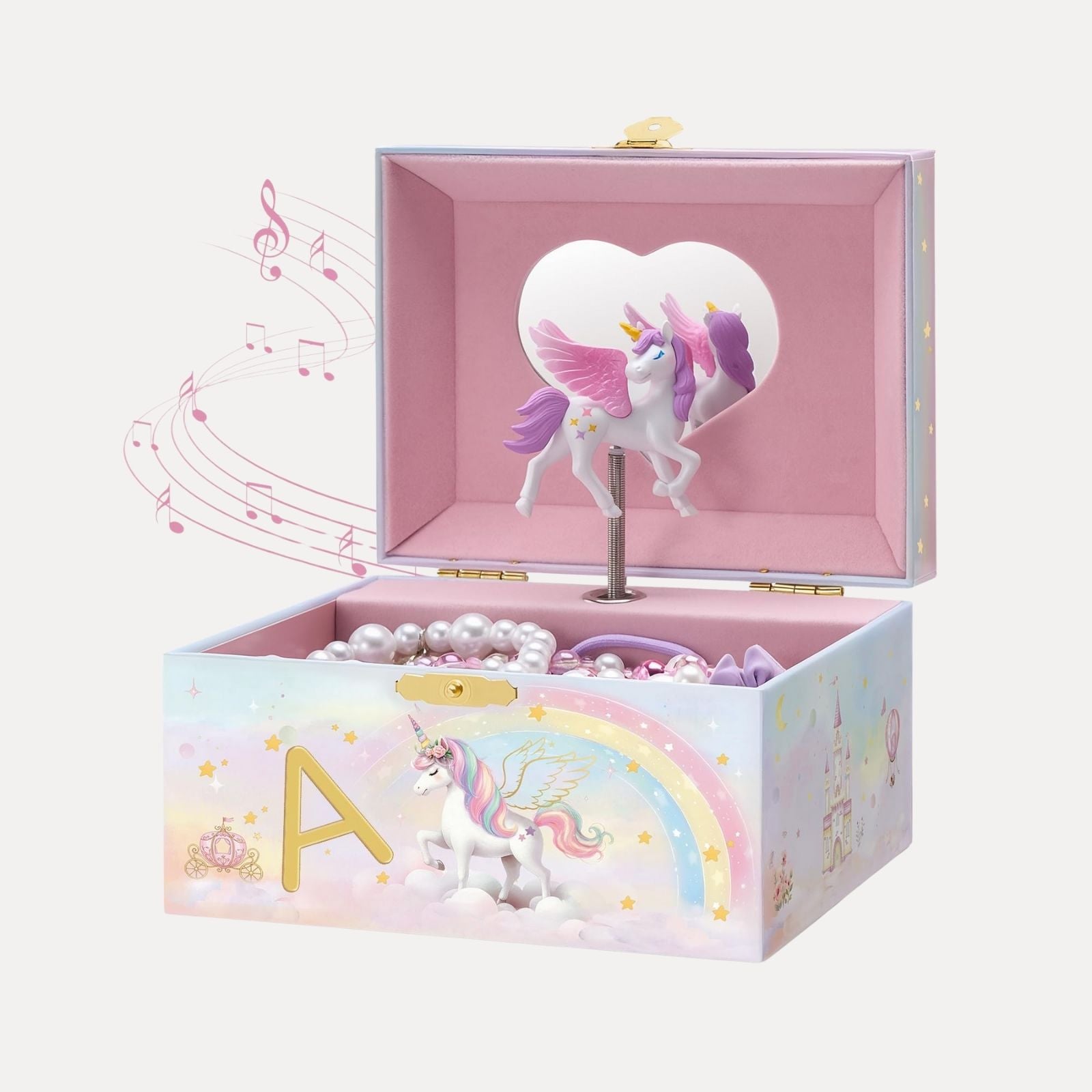 Wooden Musical Jewelry Box with Unicorn for Girls
