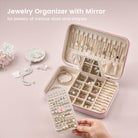 - Rangement polyvalent : un plateau amovible pour boucles d'oreilles sert également de séparation, et un miroir permet de vérifier facilement et rapidement son maquillage. Des compartiments réglables permettent d'accueillir des bijoux de différentes tailles, garantissant ainsi un rangement impeccable lors de longs voyages, sans emmêlement ni rayures.