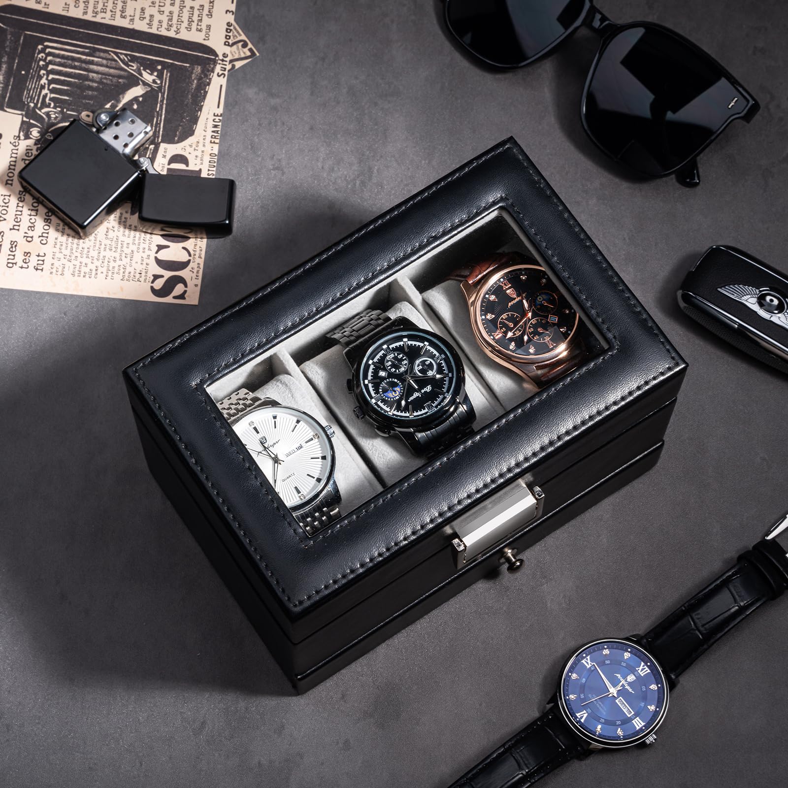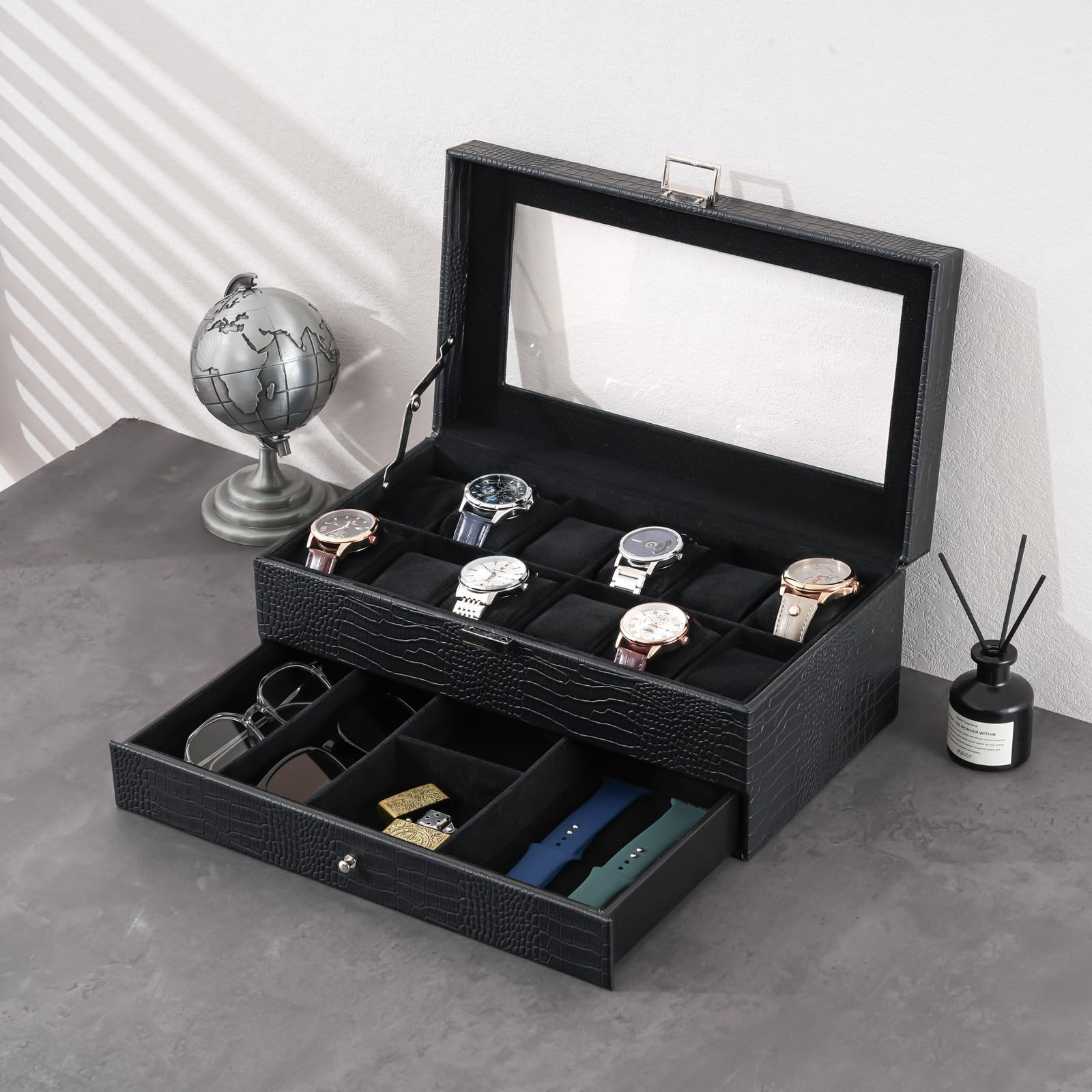 The transparent glass lid showcases your watch collection while protecting it from dust and scratches, so you can find your favorite watch at a glance.