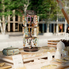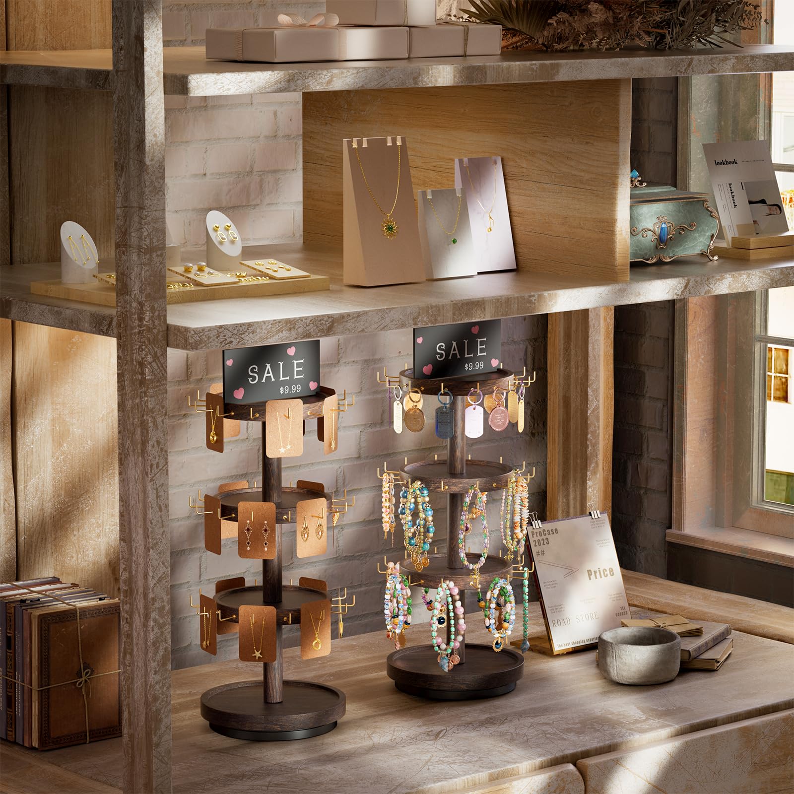 - 4 tiers wooden rotating bracelet display stand for stores, vendors, flea markets, festivals, etc. 360° rotation tray is easy to store jewelry without taking too much space